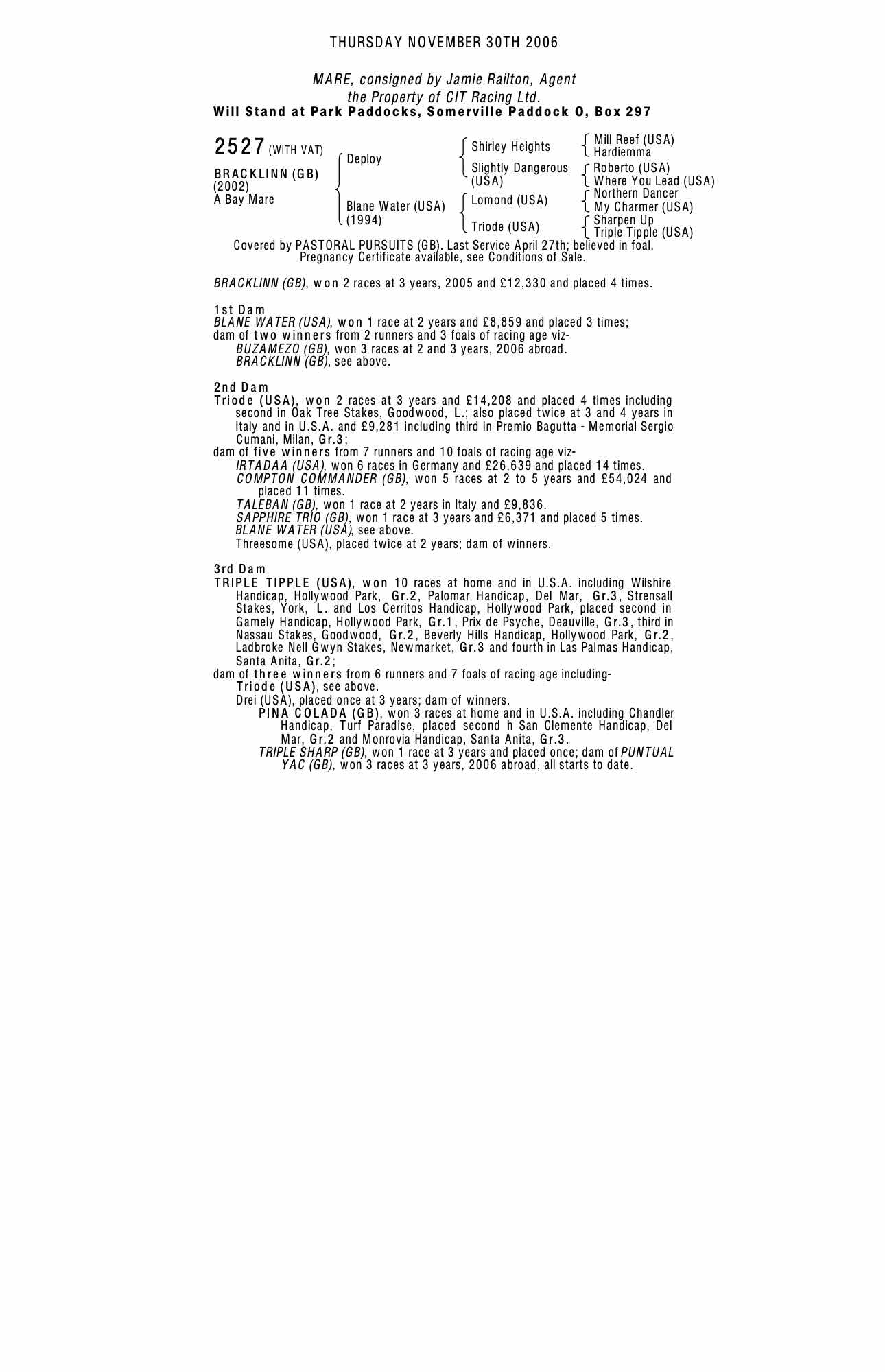 July Sale 2006 lot 237 C. by Observatory (USA) 2004, Grove Farm Stud, Newmarket=>Vendor 1,000 gns