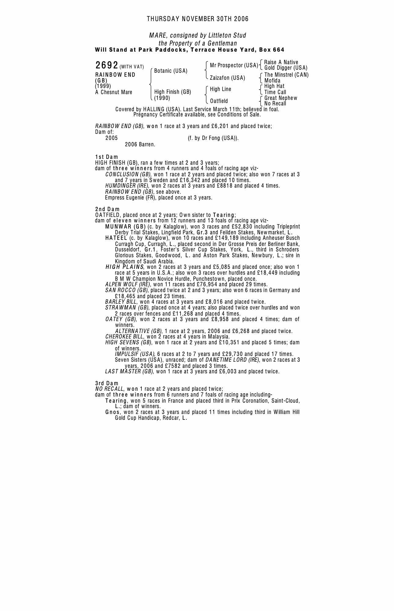 December Mare Sale 2007 lot 2343, Chapel Farm=>Vendor 14,000 gns