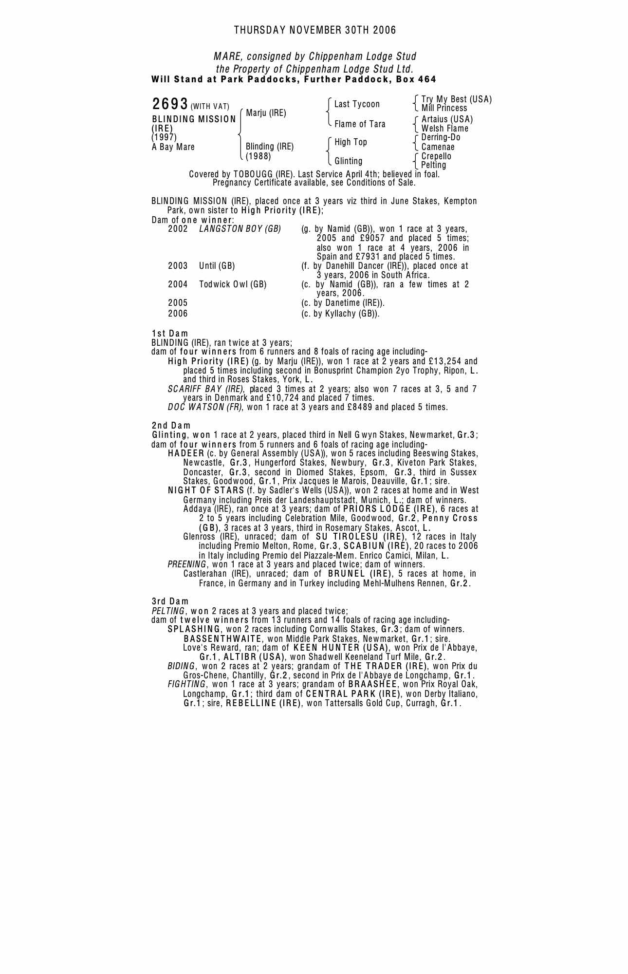 December Foal Sale 2003 lot 1082 F. by Singspiel (IRE) 2003, West Blagdon=>Lot Not Sold 19,000 gns