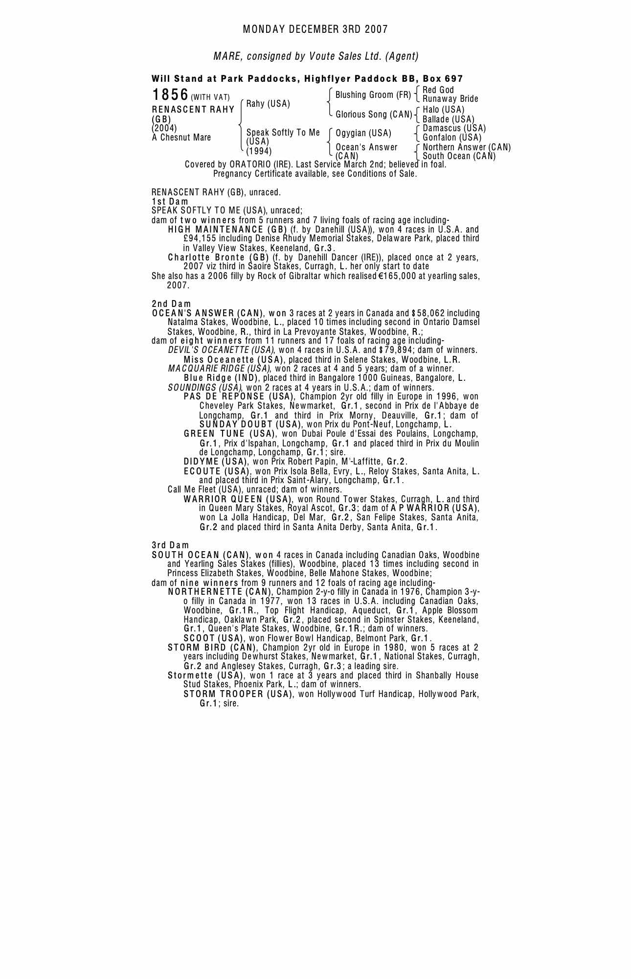 December Mare Sale 2022 lot 1720 Irishstone (IRE) (M. by Danehill Dancer (IRE)), Annshoon Stud, Ireland (Agent)=>Vendor 35,000 gns