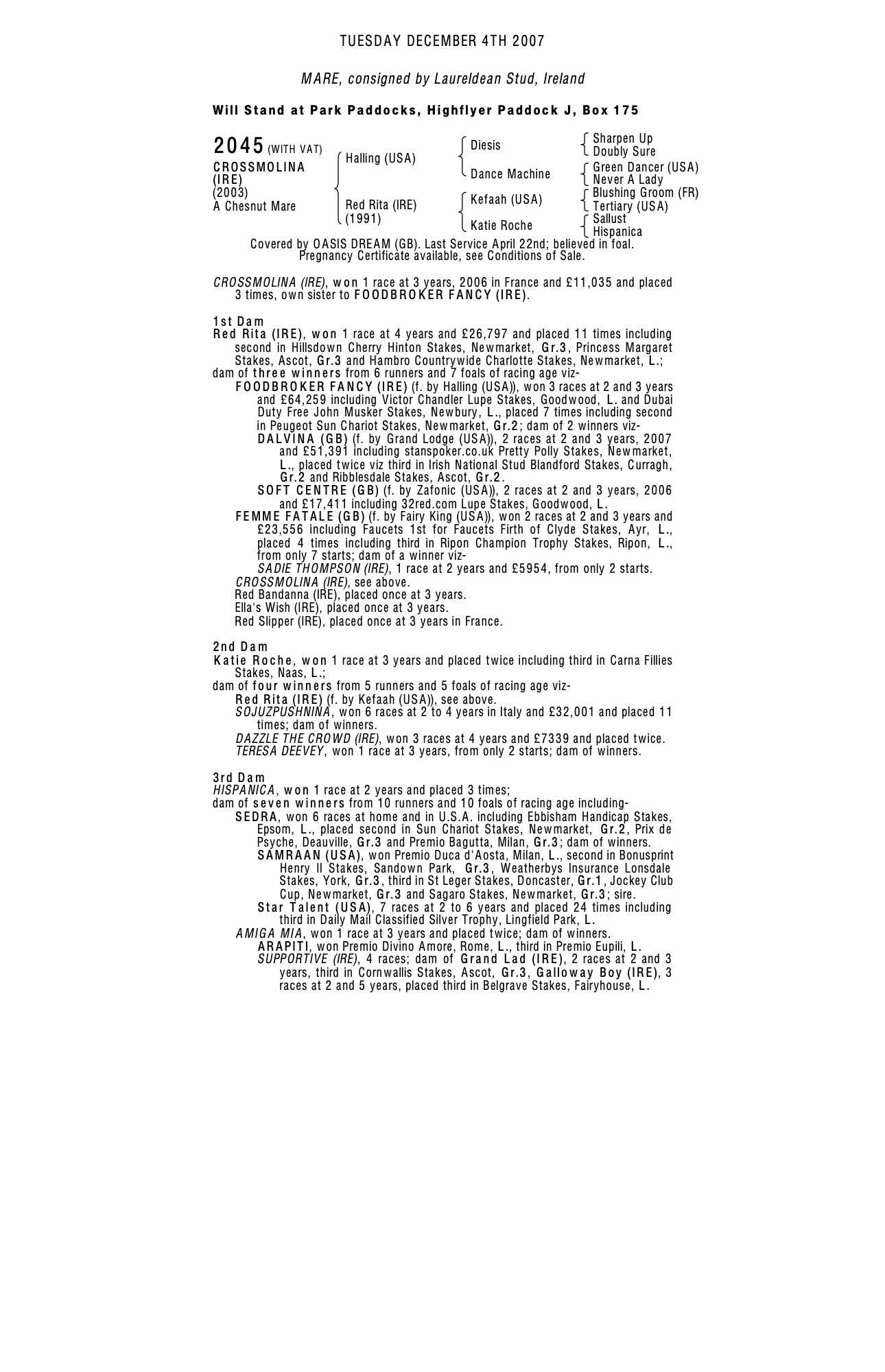 October Yearling Sale, Book 1 2004 lot 175 F. 2003, Voute Sales, Agent=>Emerald Bloodstock 110,000 gns