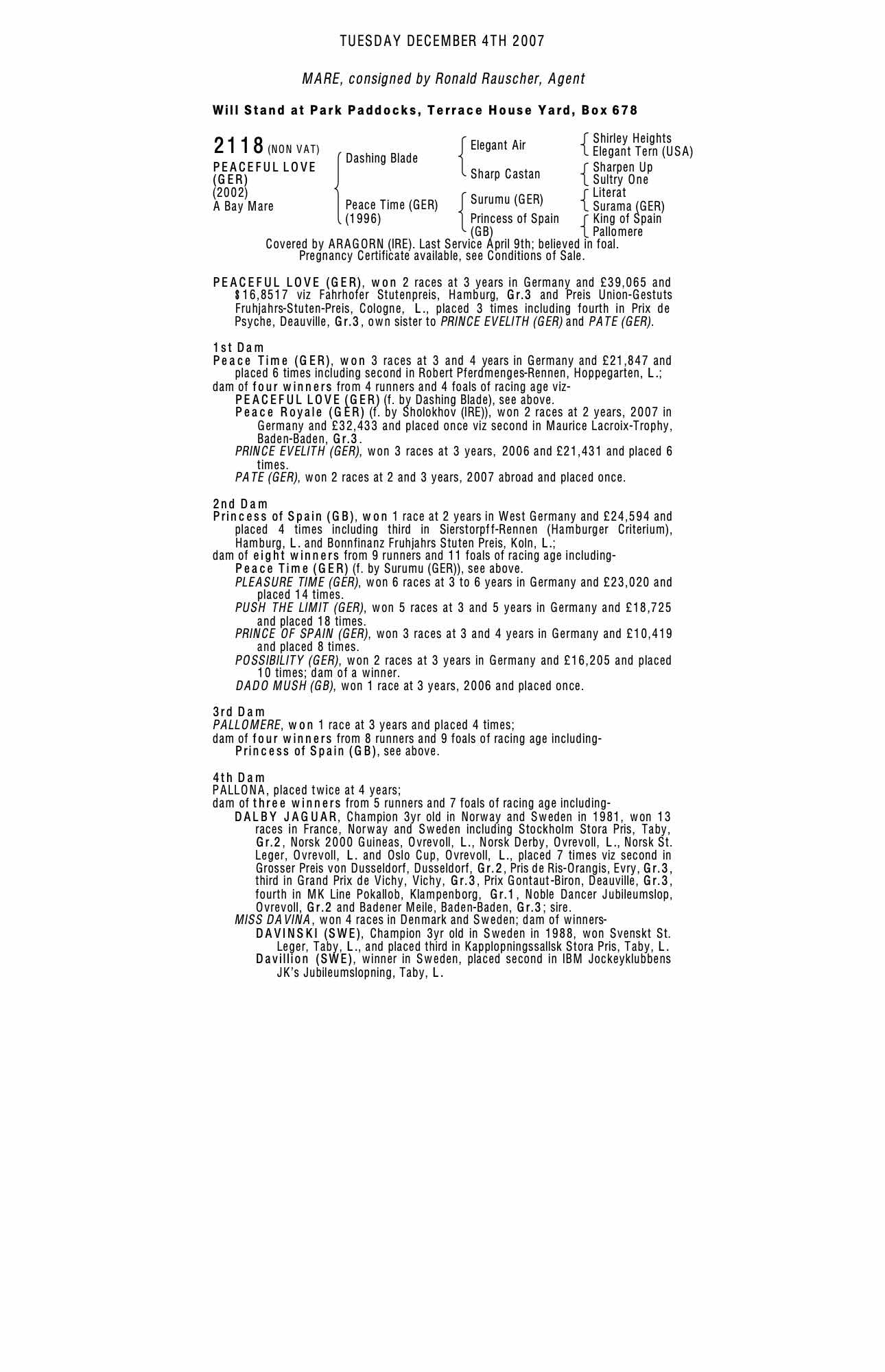 December Mare Sale 2008 lot 2357 Peace Royale (GER) (F. by Sholokhov (IRE)), Ronald Rauscher, Agent=>Vendor 280,000 gns