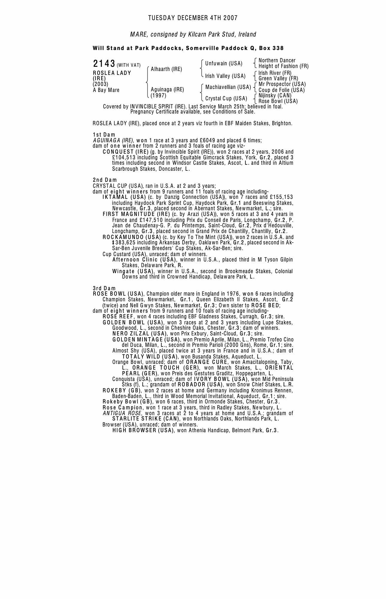 Consignor: Kilcarn Park Stud, Ireland