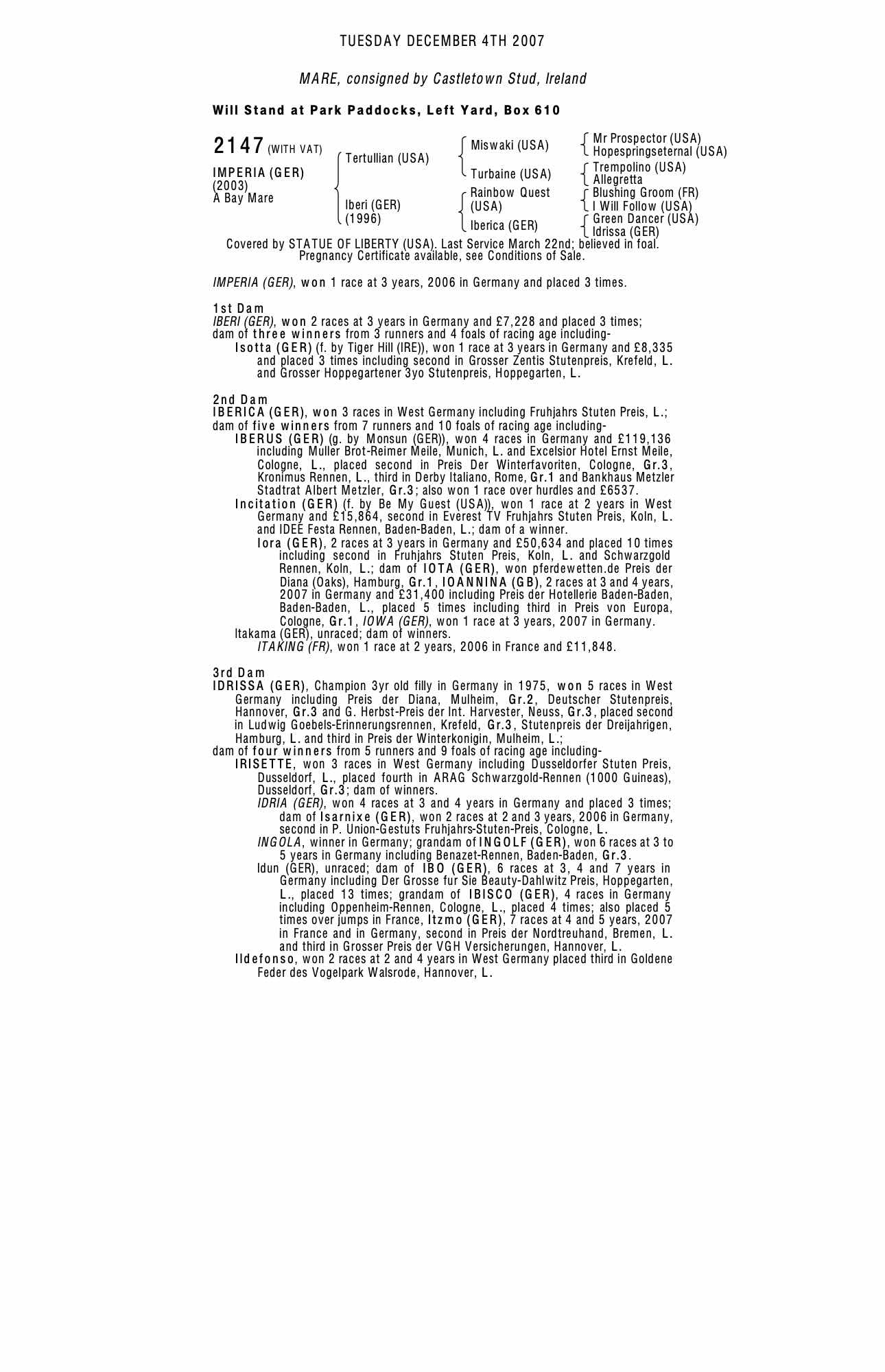 December Mare Sale 2008 lot 1843 Isotta (GER) (M. by Tiger Hill (IRE)), The National Stud=>Vendor 9,000 gns