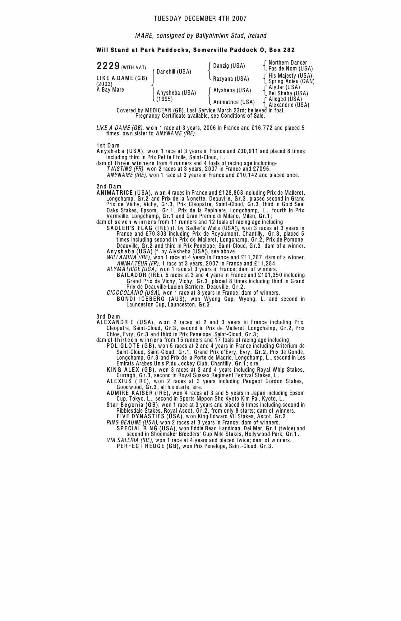 December Mare Sale 2006 lot 1939, Ecurie Freddy Head, France=>Anthony Stroud Bloodstock 85,000 gns