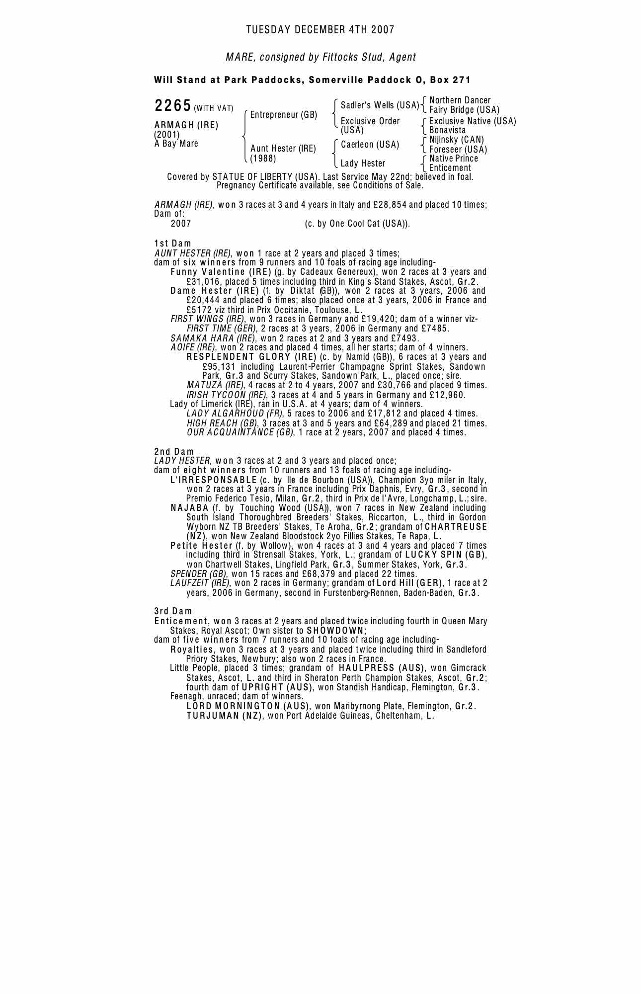 December Mare Sale 2008 lot 1666 Dame Hester (IRE) (M. by Diktat (GB)), Rathbarry Stud, Ireland (Agent)=>Richard Frisby Bloodstock 38,000 gns