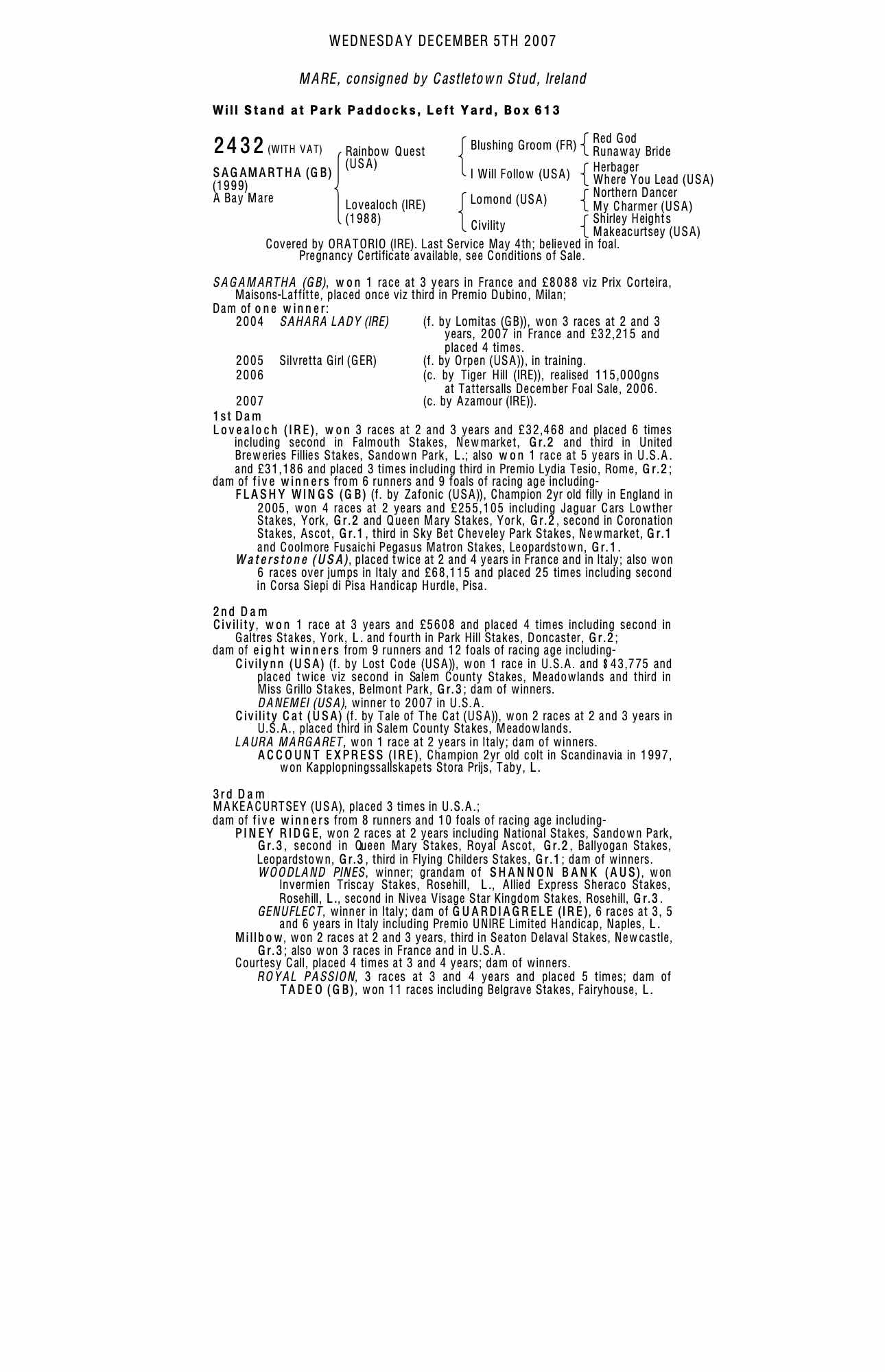 December Mare Sale 2007 lot 2446 Lovealot (GB) (F. by Fraam (GB)), Tweenhills Farm & Stud=>Seamus Kennedy 33,000 gns