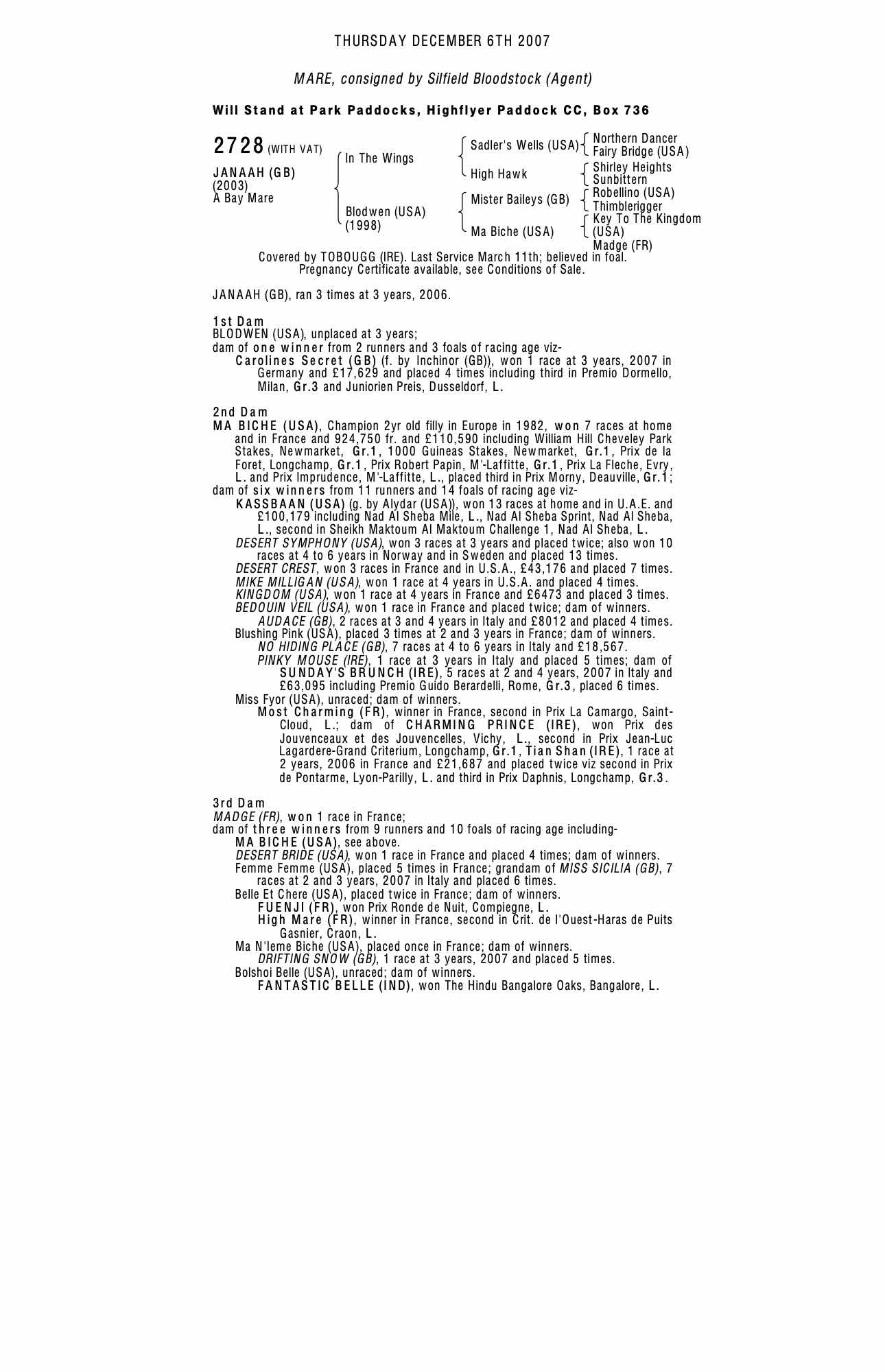 December Mare Sale 2007 lot 2627 Carolines Secret (GB) (F. by Inchinor (GB)), The Castlebridge Consignment=>Lot Not Sold 48,000 gns