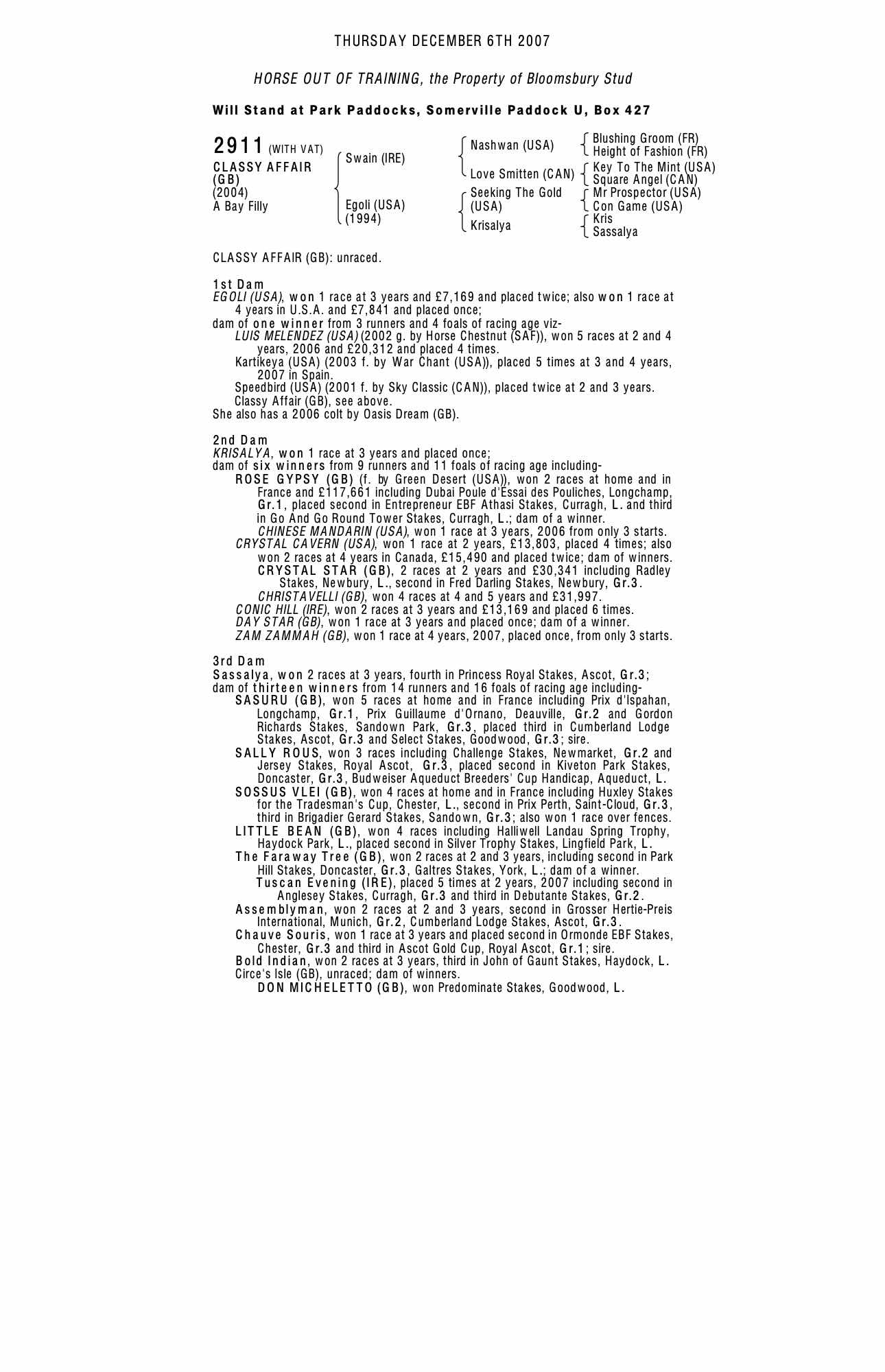 December Mare Sale 2005 lot 1632 Speedbird (USA) (M. by Sky Classic (CAN)), Bloomsbury Stud=>Seamus Kennedy 4,000 gns