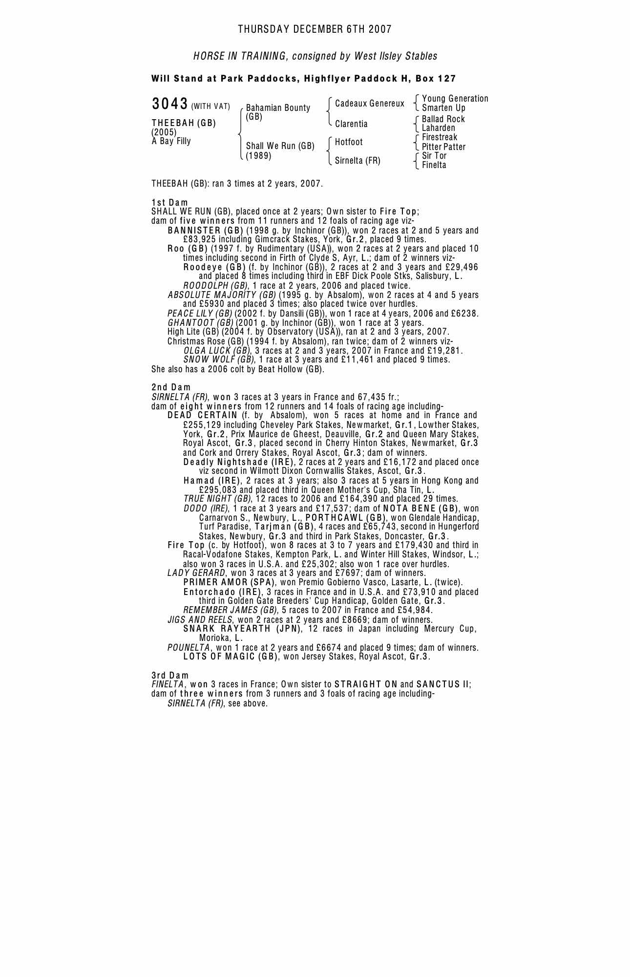 December Mare Sale 2007 lot 2838 Christmas Rose (GB) (M. by Absalom), Tweenhills Farm & Stud=>Vendor 8,000 gns