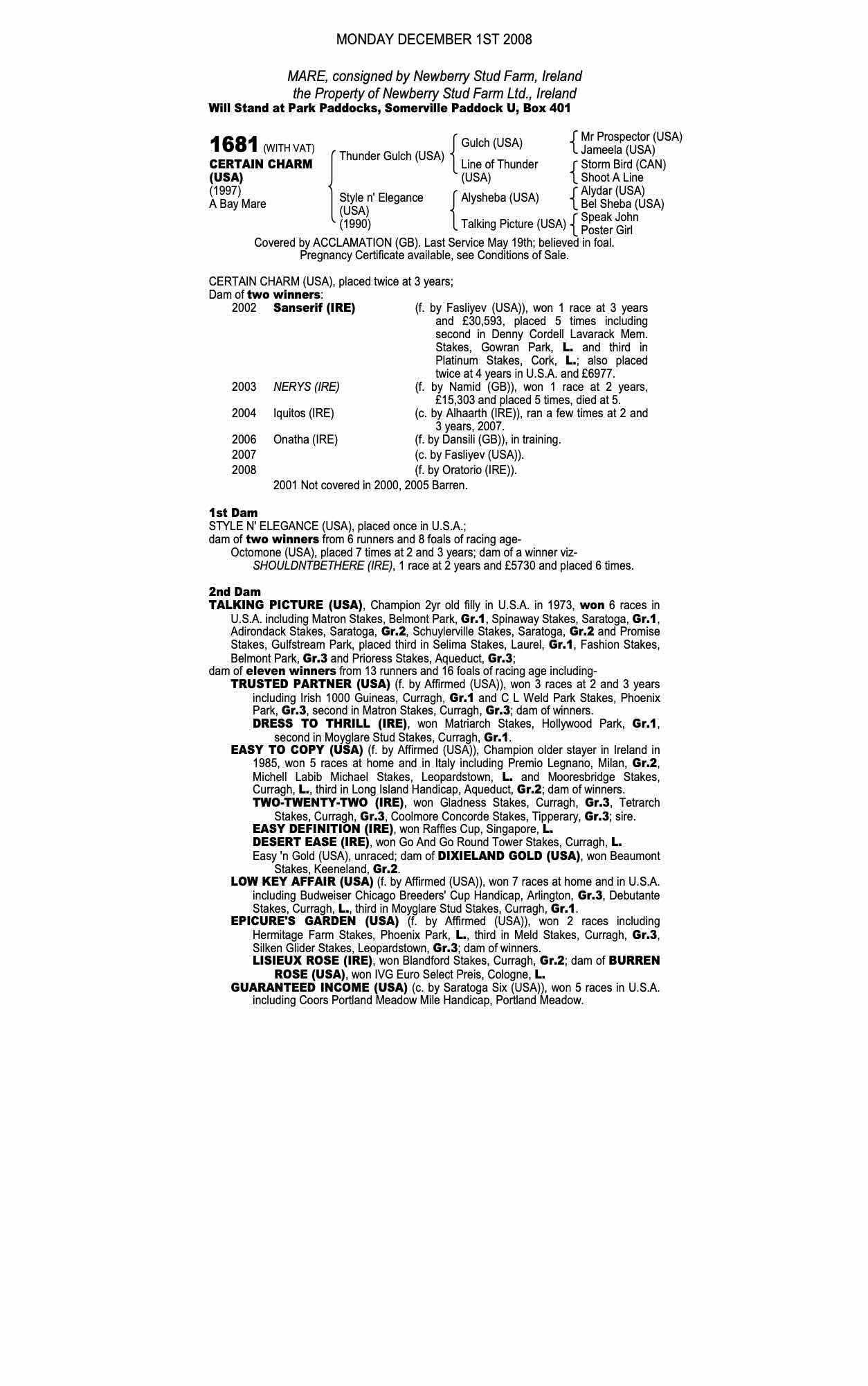 December Mare Sale 2001 lot 1884 Pampita (USA) (M. by Affirmed (USA)), Kiltinan Stud, Ireland=>JS Company 75,000 gns
