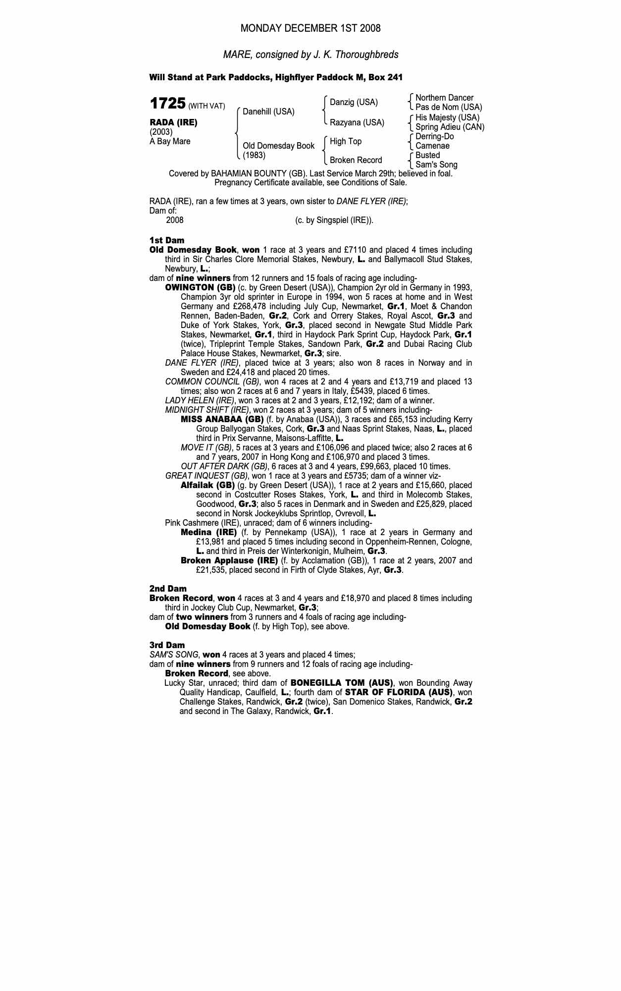 December Mare Sale 2002 lot 1666 Lady Helen (IRE) (M. by Salse (USA)), Voute Sales, Agent=>Lot Not Sold 23,000 gns