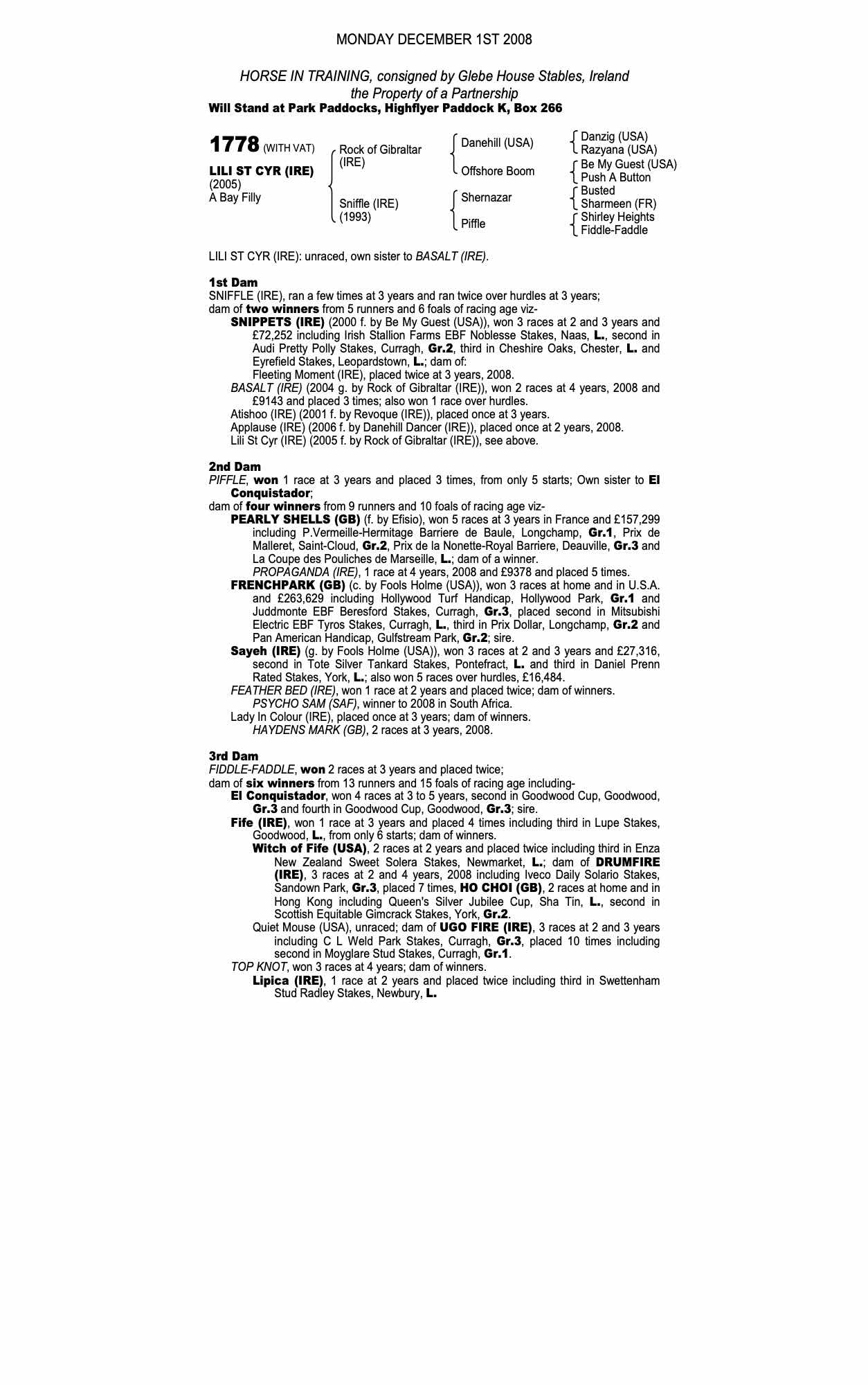 December Yearling Sale 2009 lot 156 F. by Danehill Dancer (IRE) 2008, The Castlebridge Consignment=>Vendor 11,000 gns