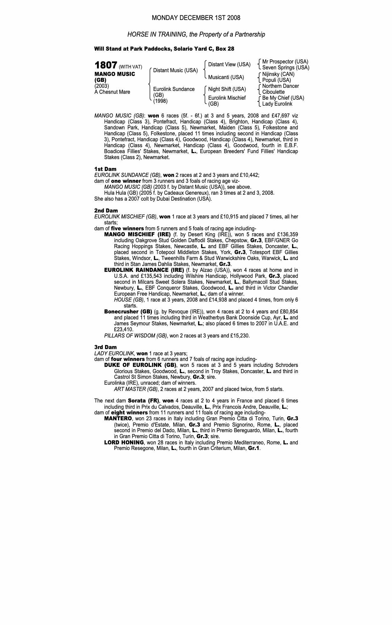 December Mare Sale 2008 lot 2731 Dairy Maid (GB) (M. by Montjeu (IRE)), Georgia House Stud=>Yousuf Al Kandari 3,500 gns