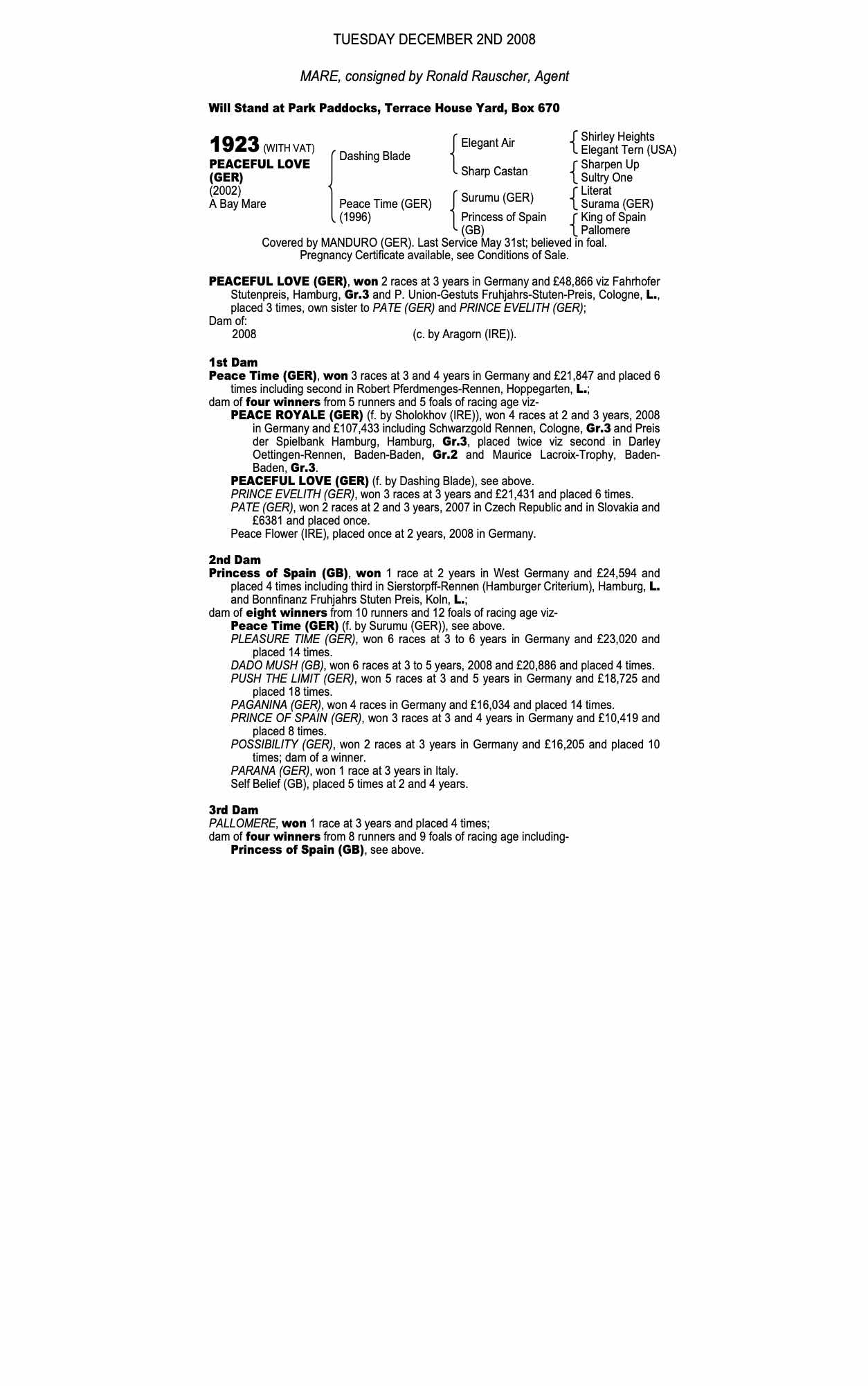 December Mare Sale 2008 lot 2357 Peace Royale (GER) (F. by Sholokhov (IRE)), Ronald Rauscher, Agent=>Vendor 280,000 gns