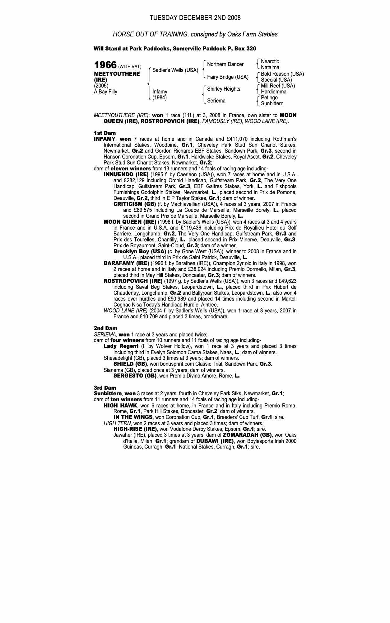 December Mare Sale 2007 lot 2174 Wood Lane (IRE) (F.), Oaks Farm Stables=>De Burgh/Farrington 340,000 gns
