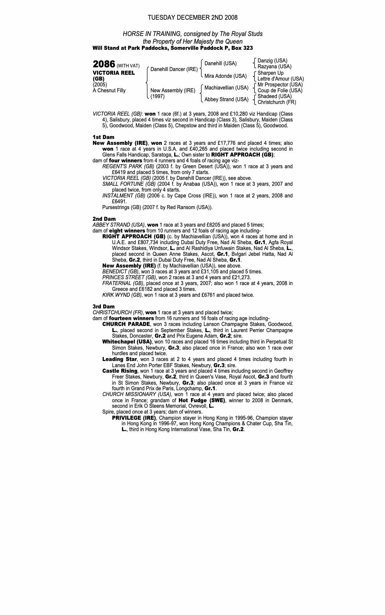 December Mare Sale 2007 lot 2301 Regent's Park (GB) (M. by Green Desert (USA)), The Royal Studs=>Highflyer Bloodstock 47,000 gns