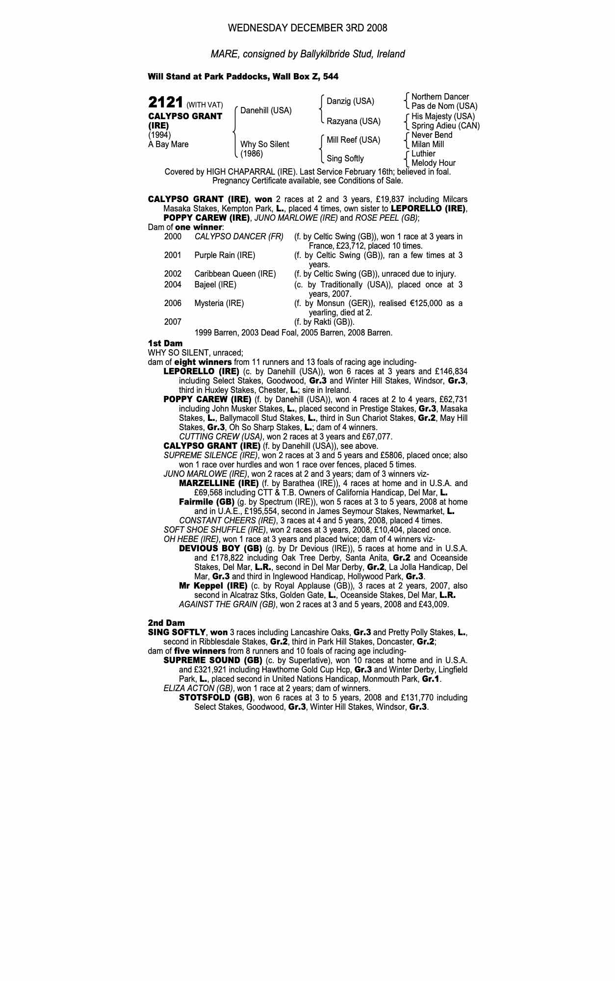 December Mare Sale 1999 lot 1402 Oh Hebe (IRE) (M. by Night Shift (USA)), Pendley Farm Stables=>Charles Van Straubenzee 46,000 gns