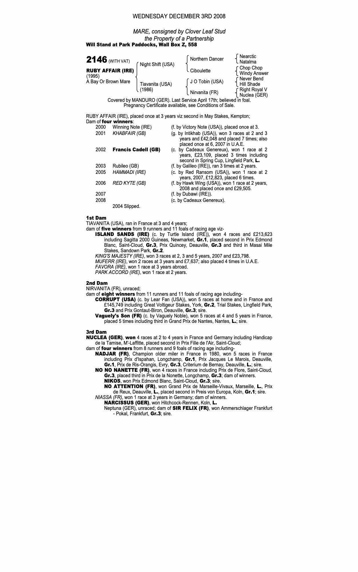 December Mare Sale 1999 lot 1405 Ruby Affair (IRE) (M.), Clover Leaf Stud=>Lot Not Sold 49,000 gns