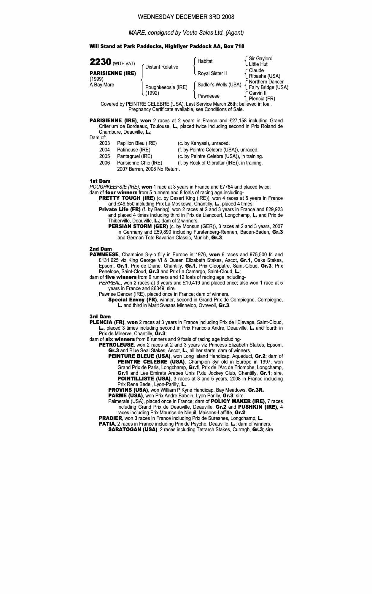 December Mare Sale 2001 lot 1808 Private Life (FR) (F. by Bering), Voute Sales, Agent=>Anthony Stroud Bloodstock 140,000 gns