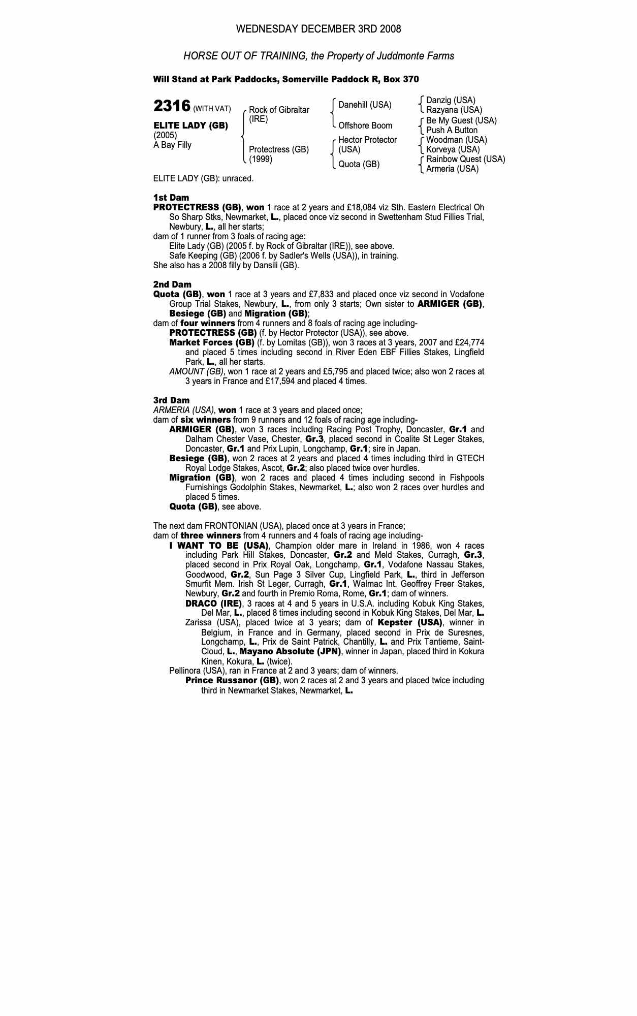 December Mare Sale 2009 lot 1893 Safe Keeping (GB) (F. by Sadler's Wells (USA)), Juddmonte Farms=>Radiant Bloodstock 36,000 gns