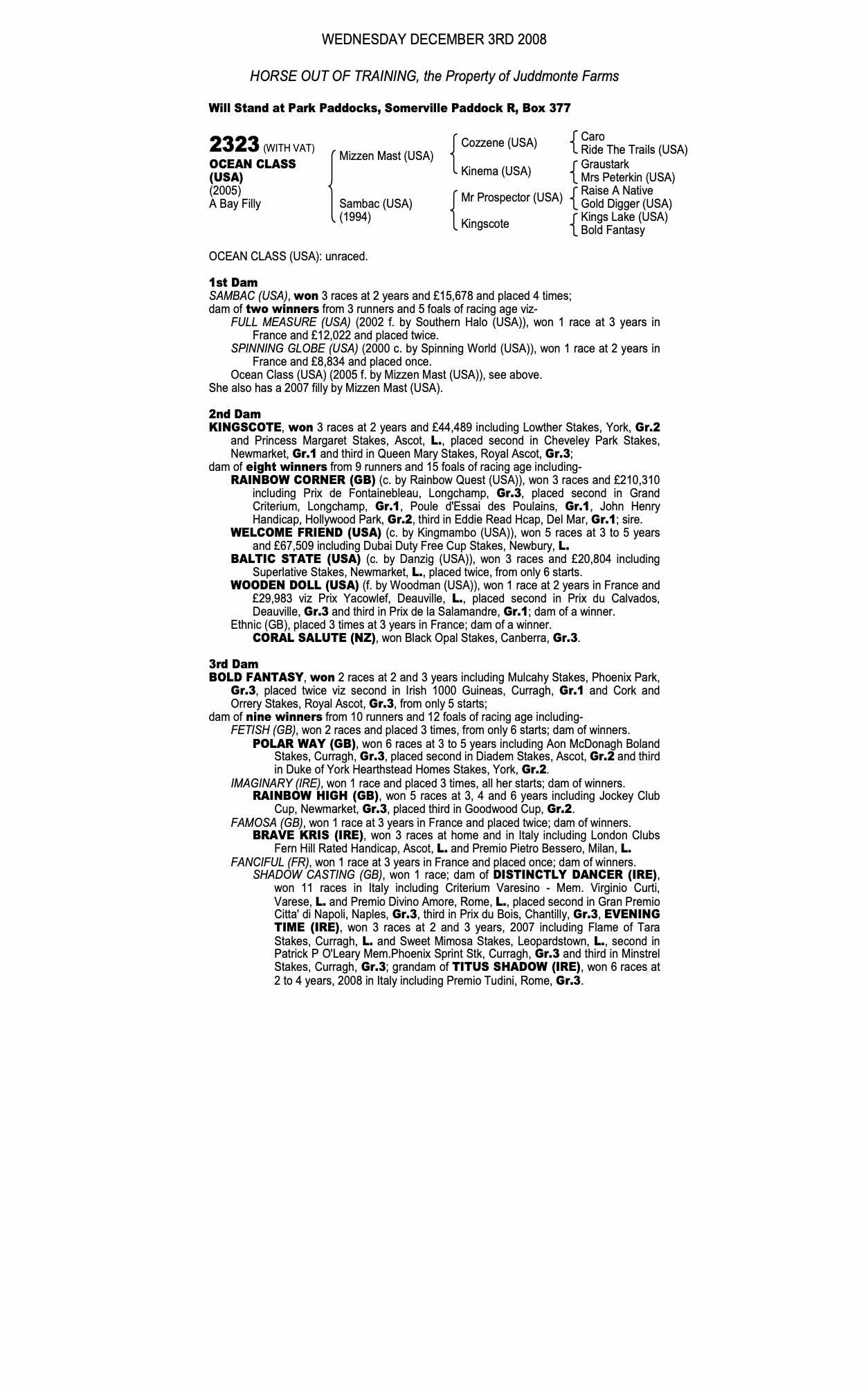 December Mare Sale 2005 lot 2405 Sabander Bay (USA) (M. by Lear Fan (USA)), Jamie Railton, Agent=>Jeremy Brummitt 67,000 gns