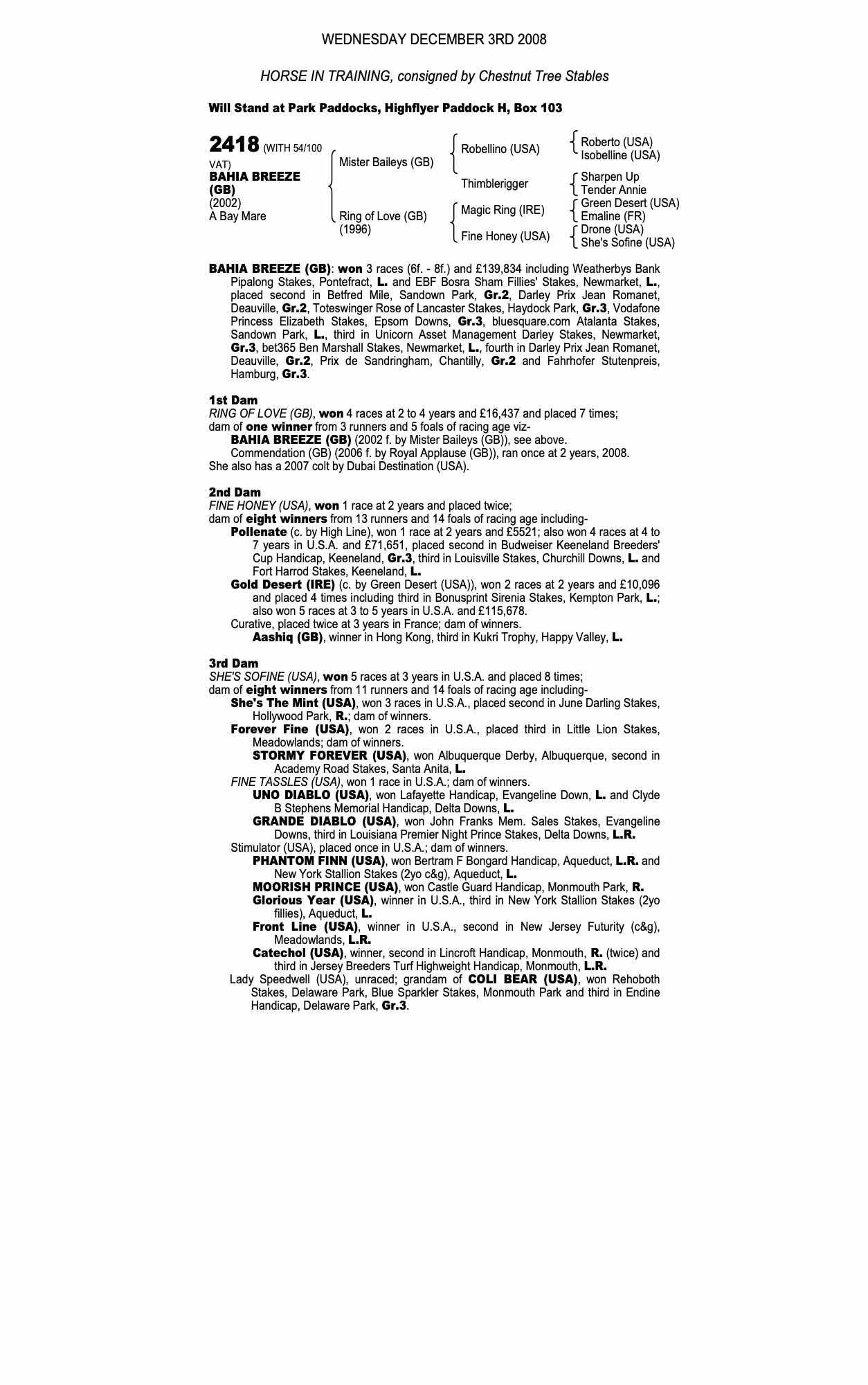 December Foal Sale 2003 lot 605 C. by Fraam (GB) 2003, Petches Farm=>Equine Services 22,000 gns