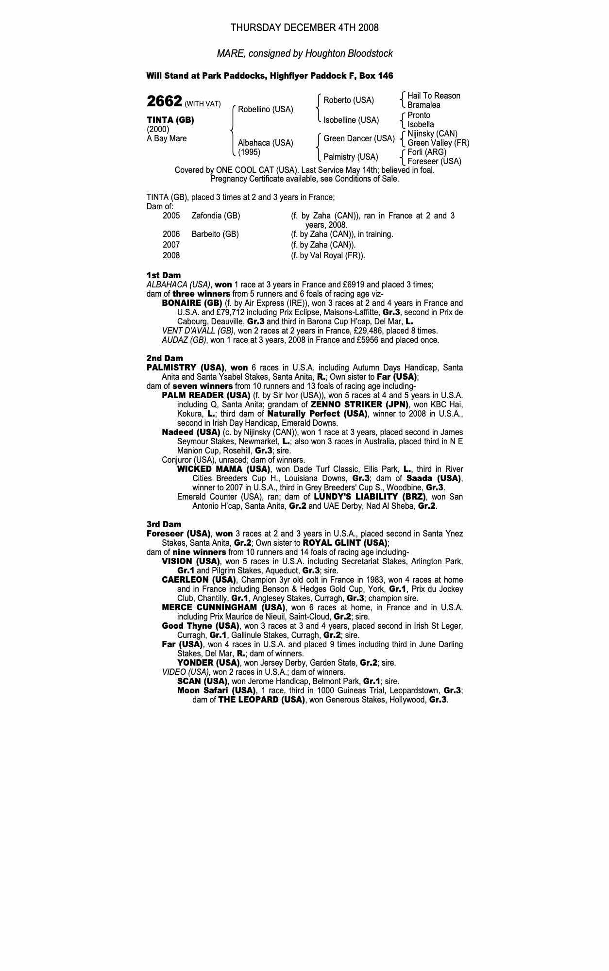 Autumn Yearling Sale 2001 lot 1813 F. , West Stow Stud=>Lot Not Sold 9,500 gns