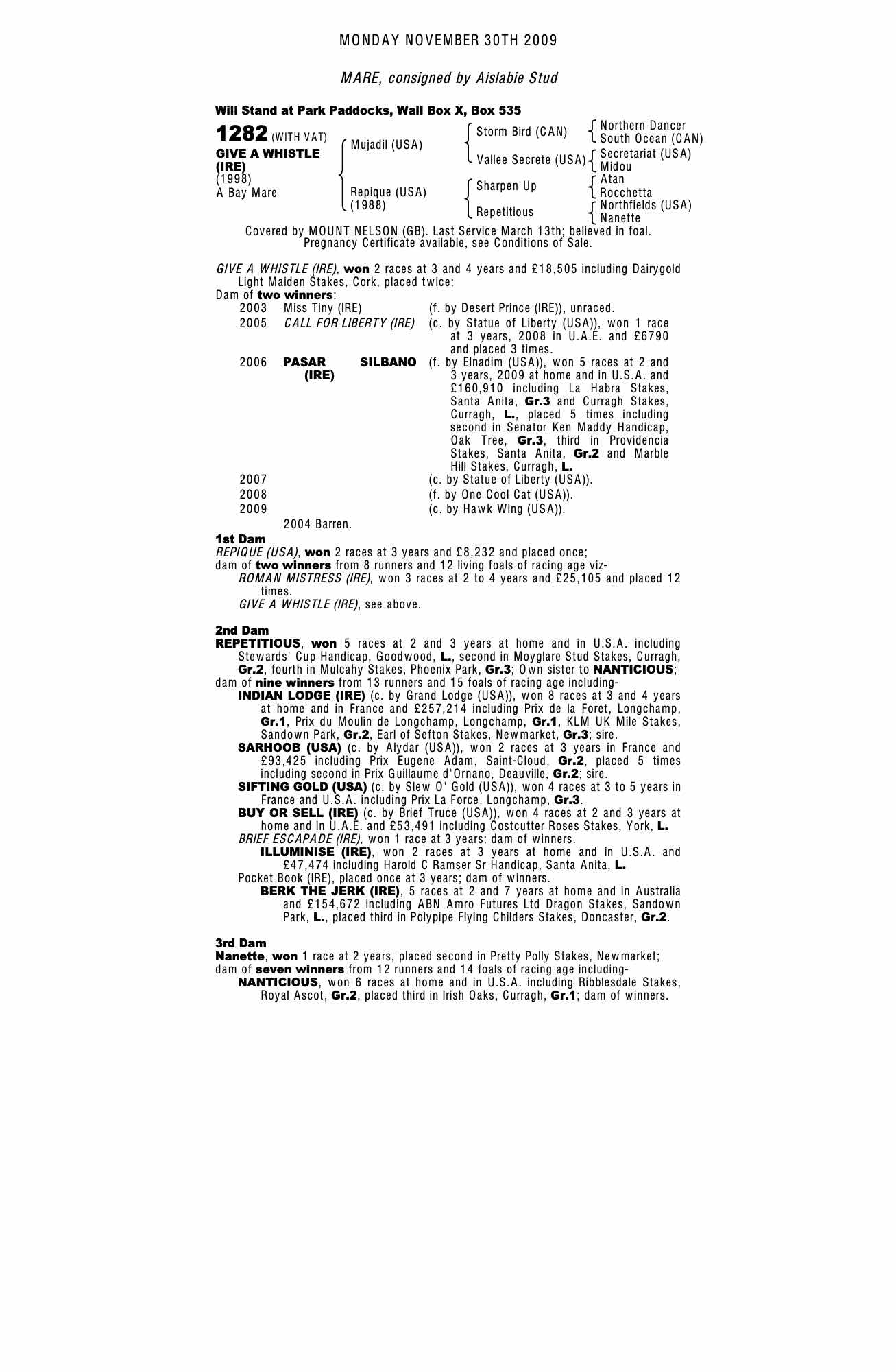 December Mare Sale 2010 lot 1443 Pasar Silbano (IRE) (F. by Elnadim (USA)), Three Chimneys Sales, USA (Agent)=>Kern/Lillingston Association 125,000 gns