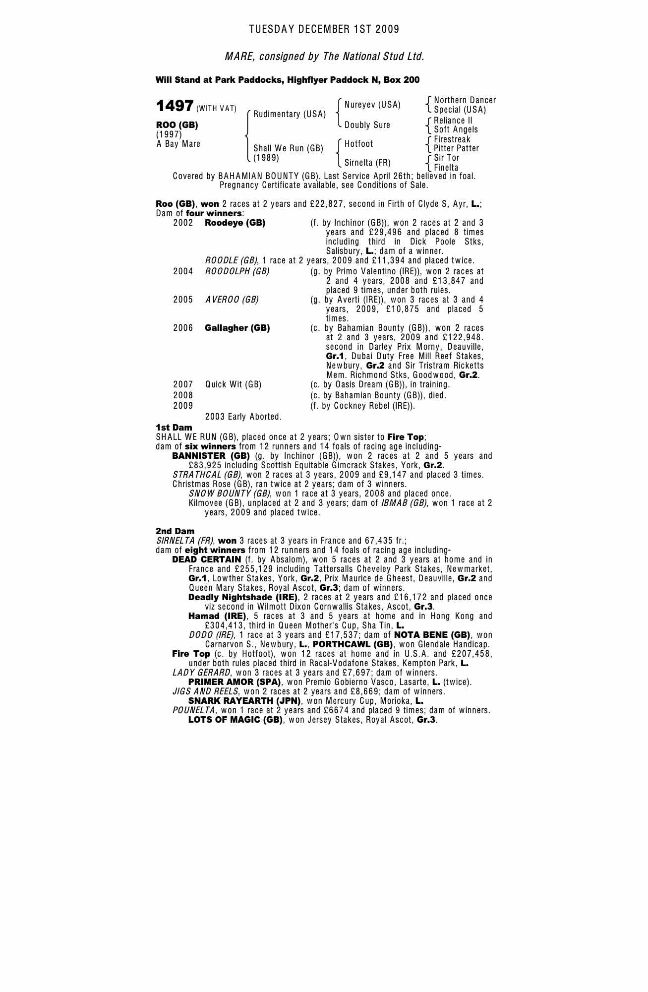 December Mare Sale 2014 lot 1445 Run of The Day (GB) (M. by Three Valleys (USA)), Clover Leaf Stud=>Douglas King 68,000 gns