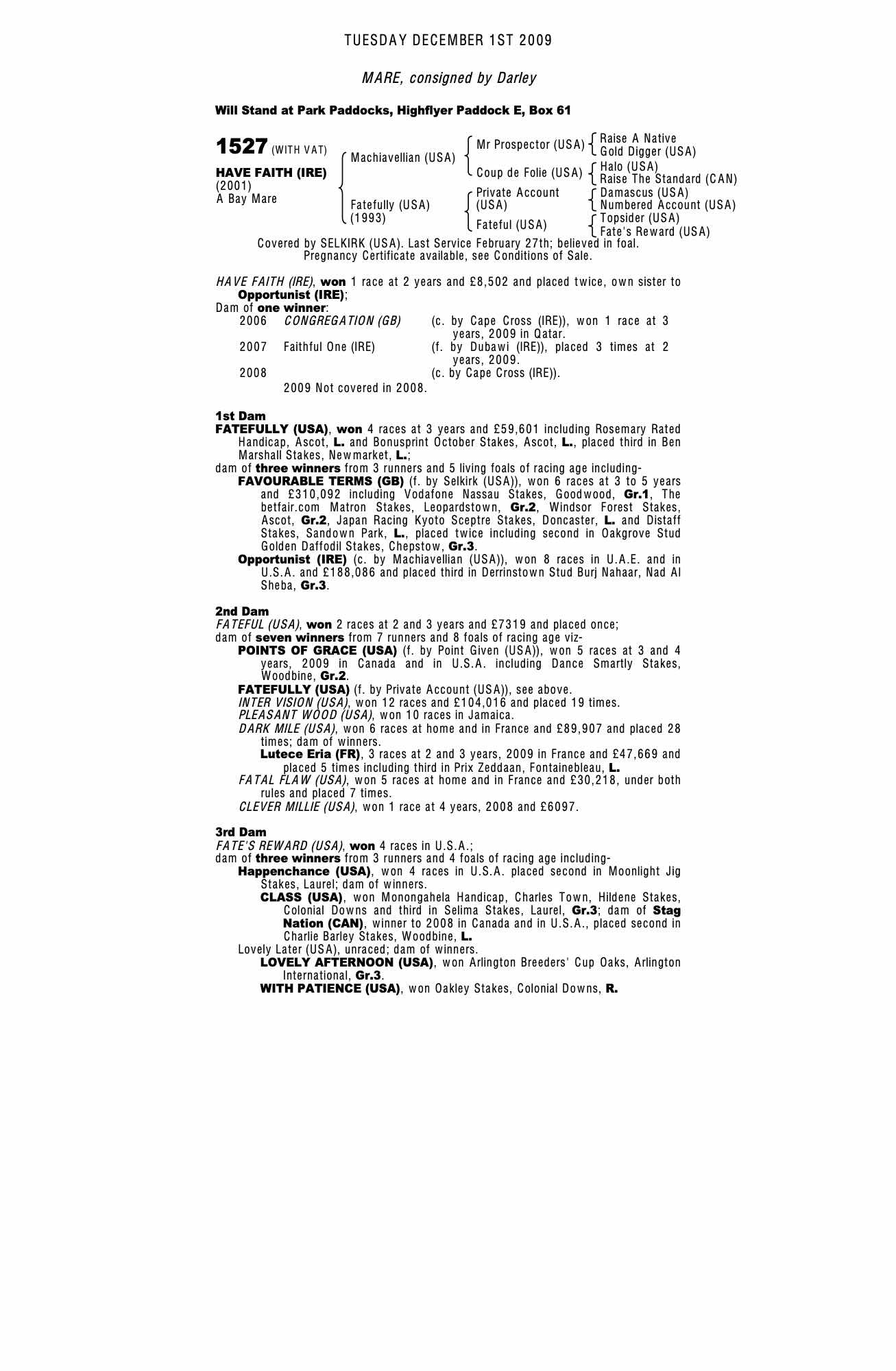 December Mare Sale 2010 lot 1403 Portentous (GB) (M. by Selkirk (USA)), Voute Sales Ltd. (Agent)=>Lot Not Sold 44,000 gns
