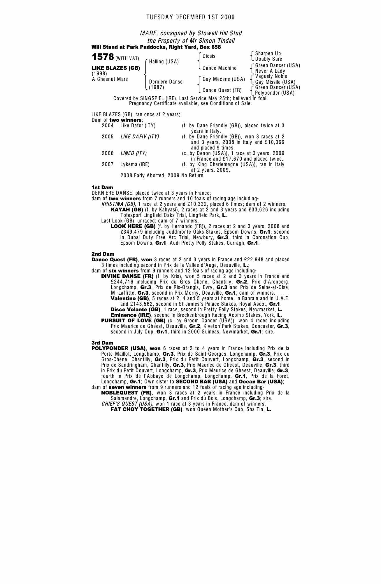 December Mare Sale 2005 lot 2583 Kristina (GB) (M. by Kris), Voute Sales, Agent=>Phillip Young 1,200 gns