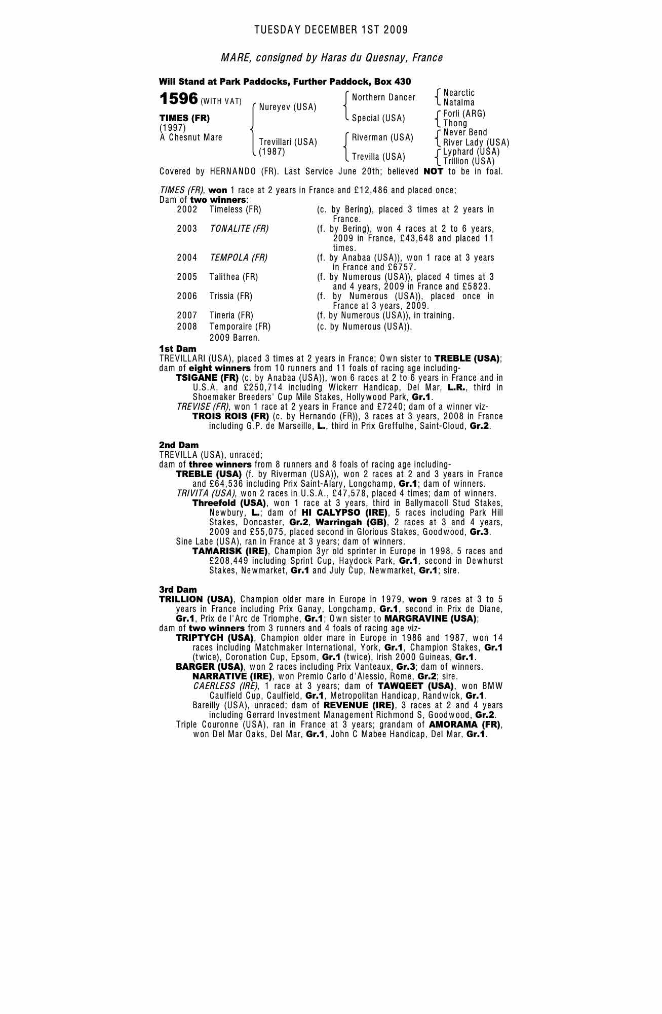 December Mare Sale 2001 lot 1948 Tremiere (FR) (F. by Anabaa (USA)), Haras du Quesnay, France=>Lot Not Sold 11,000 gns