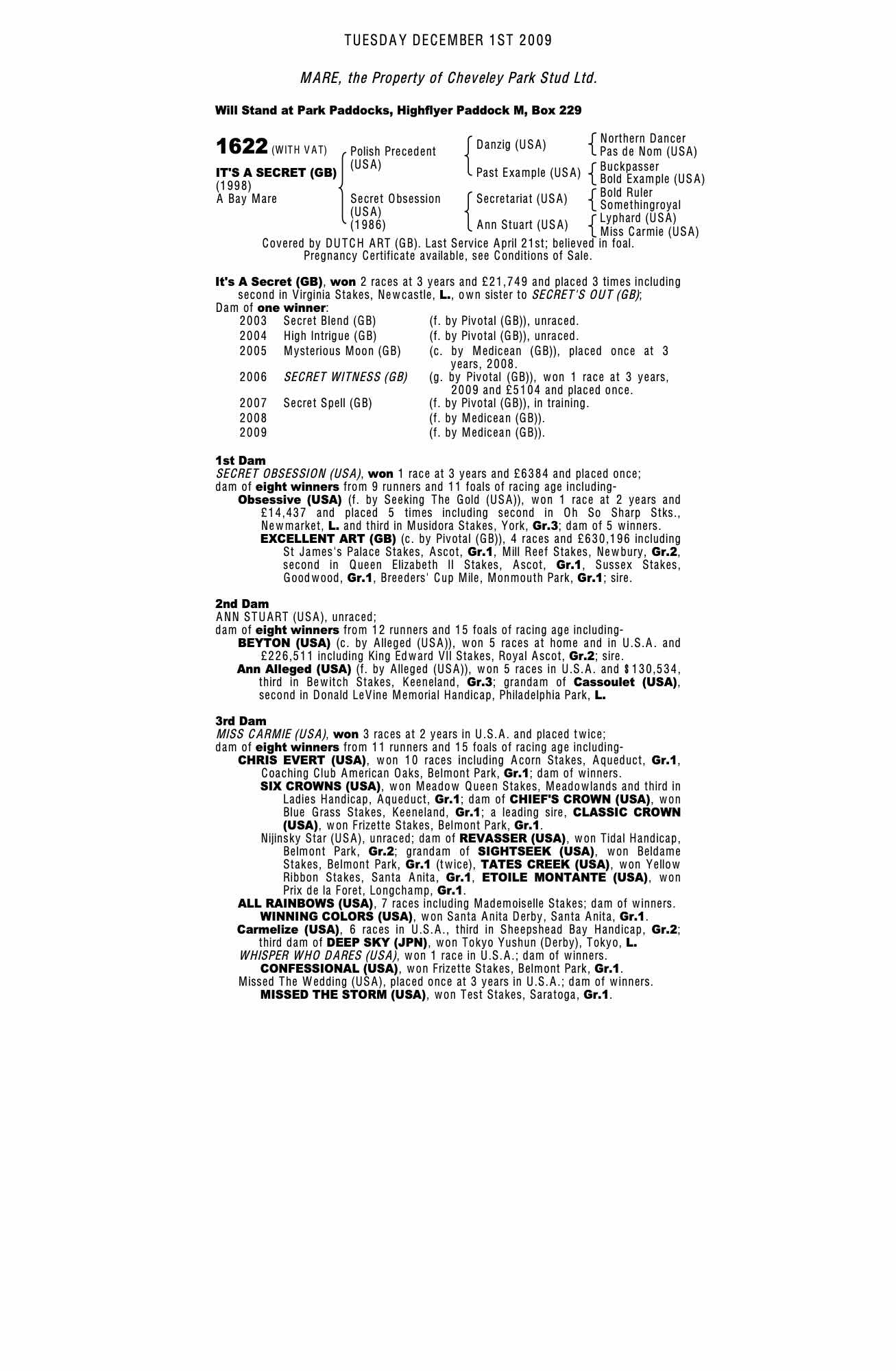 December Mare Sale 2008 lot 1633 Secret Blend (GB) (M. by Pivotal (GB)), Brookside Stud (Newmarket), Agent=>Triple H Stud 18,000 gns