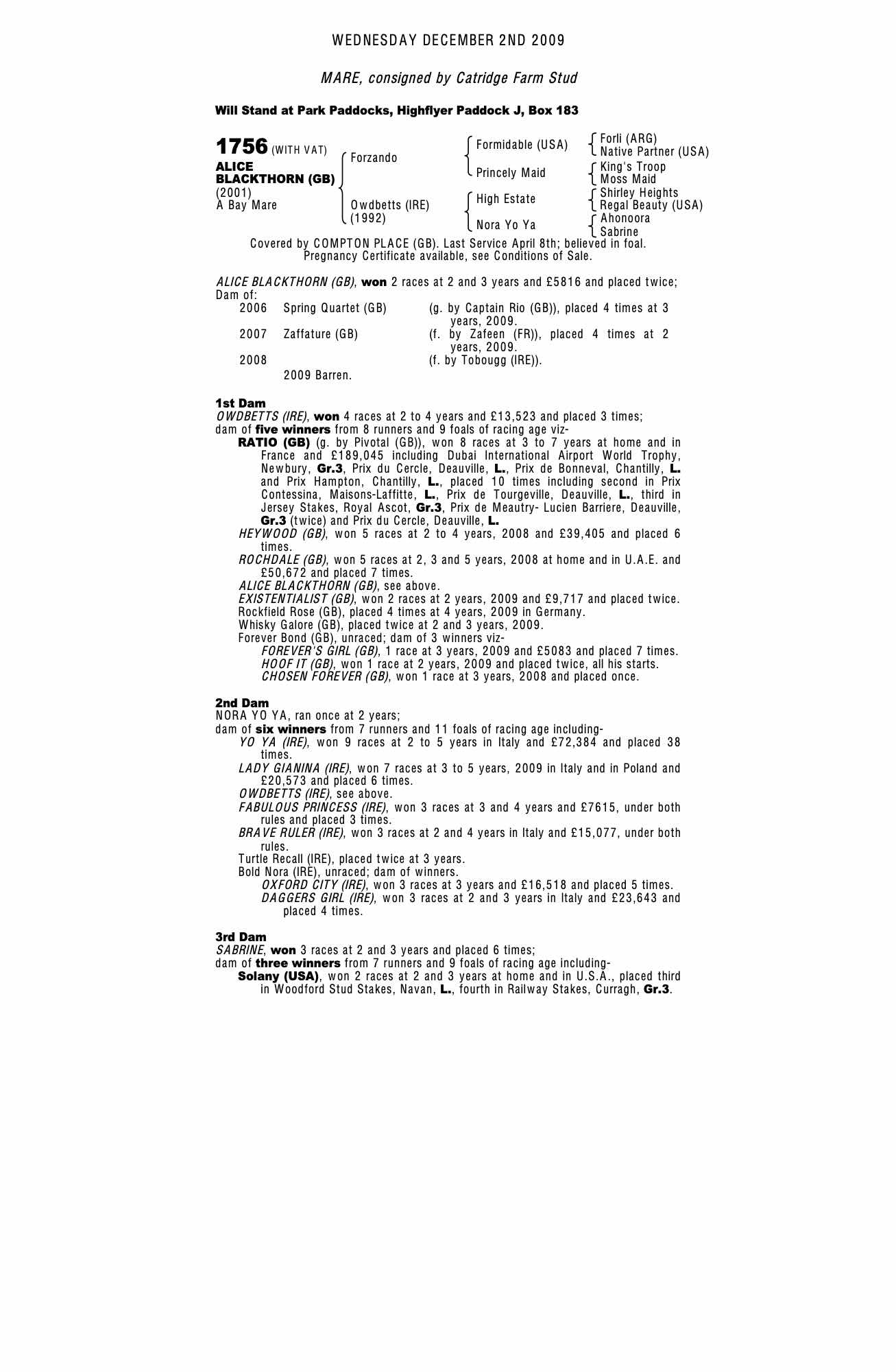 December Mare Sale 2011 lot 1858 Existentialist (GB) (M. by Exceed And Excel (AUS)), Catridge Farm Stud=>David Redvers Bloodstock 42,000 gns