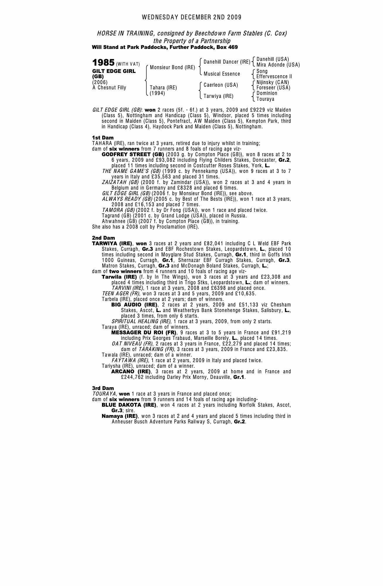 Consignor: Beechdown Farm Stables (C. Cox)
