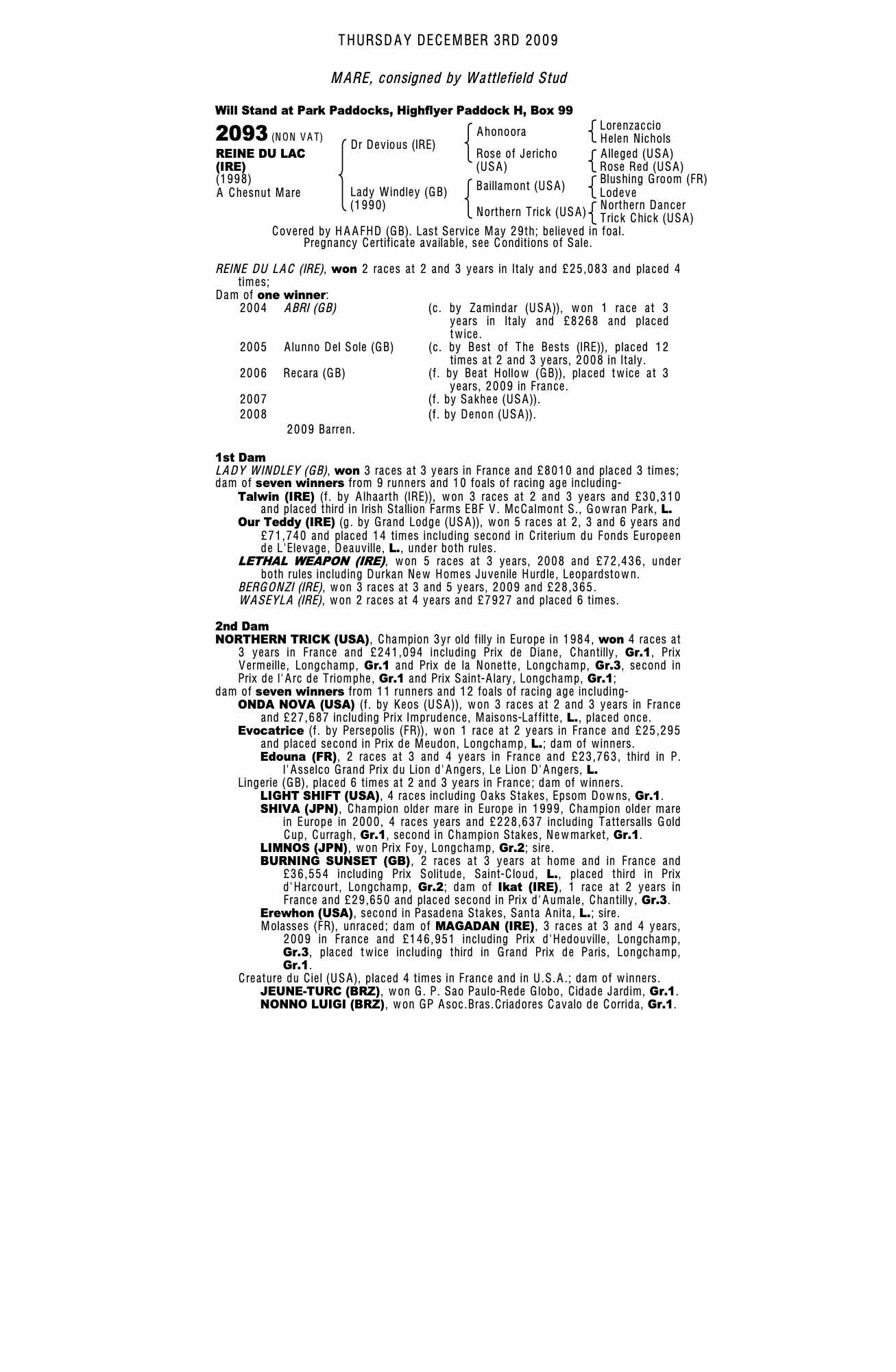 Consignor: Wattlefield Stud