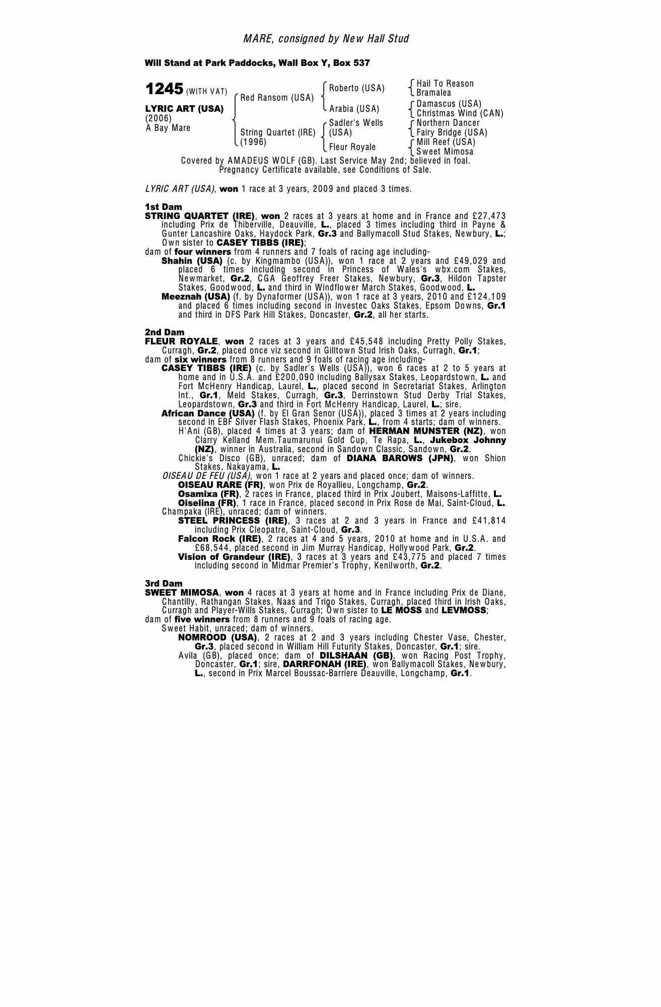 Consignor: New Hall Stud