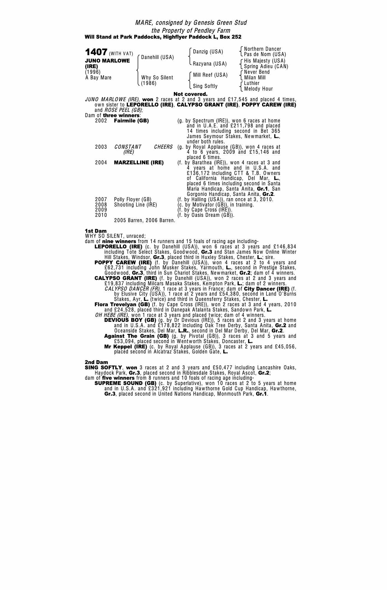 December Mare Sale 2012 lot 1354 Sun of Jamaica (GB) (F. by Cape Cross (IRE)), Ronald Rauscher, Agent=>Dermot Cantillon 18,500 gns