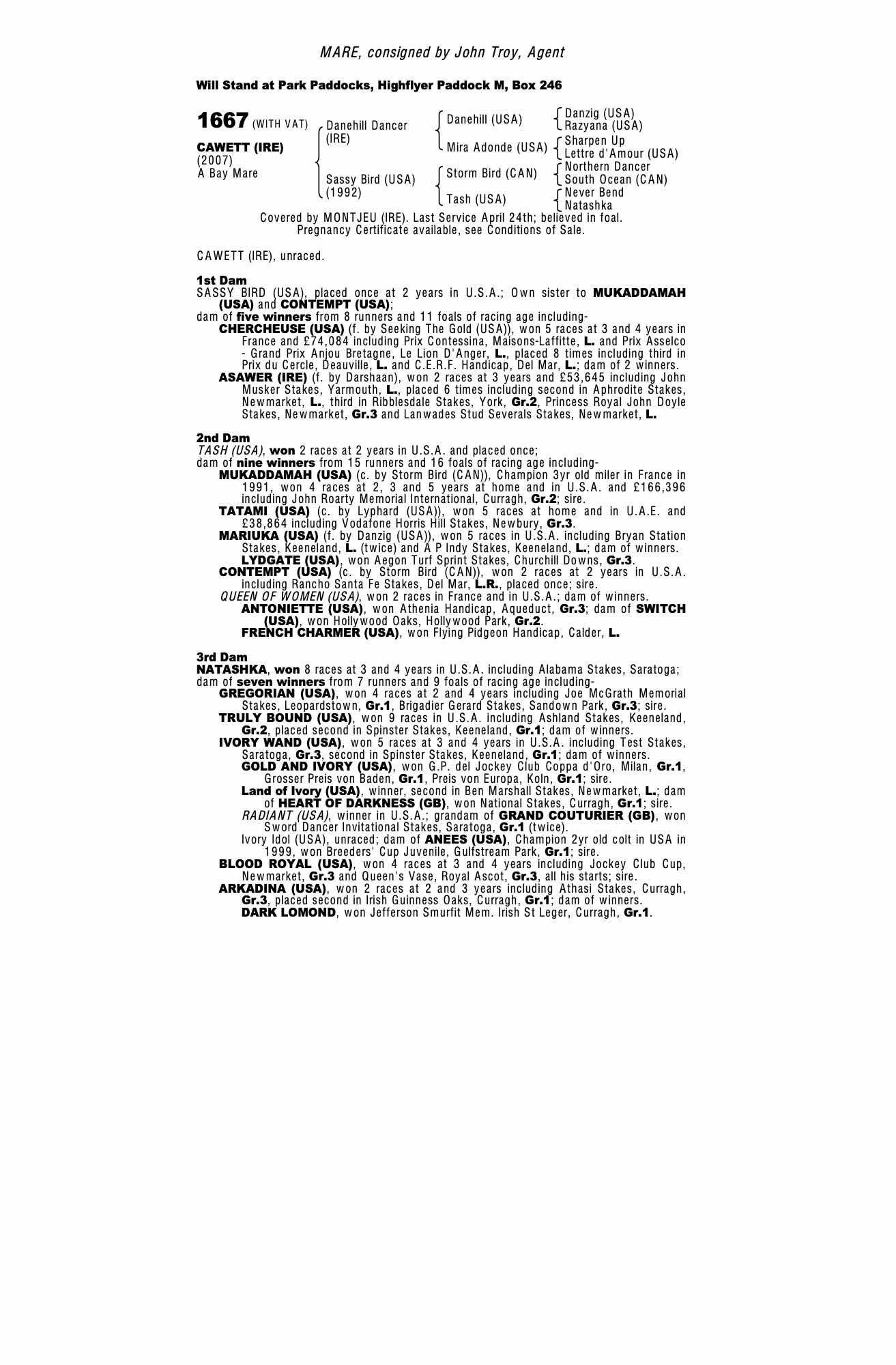 Consignor: John Troy, Agent