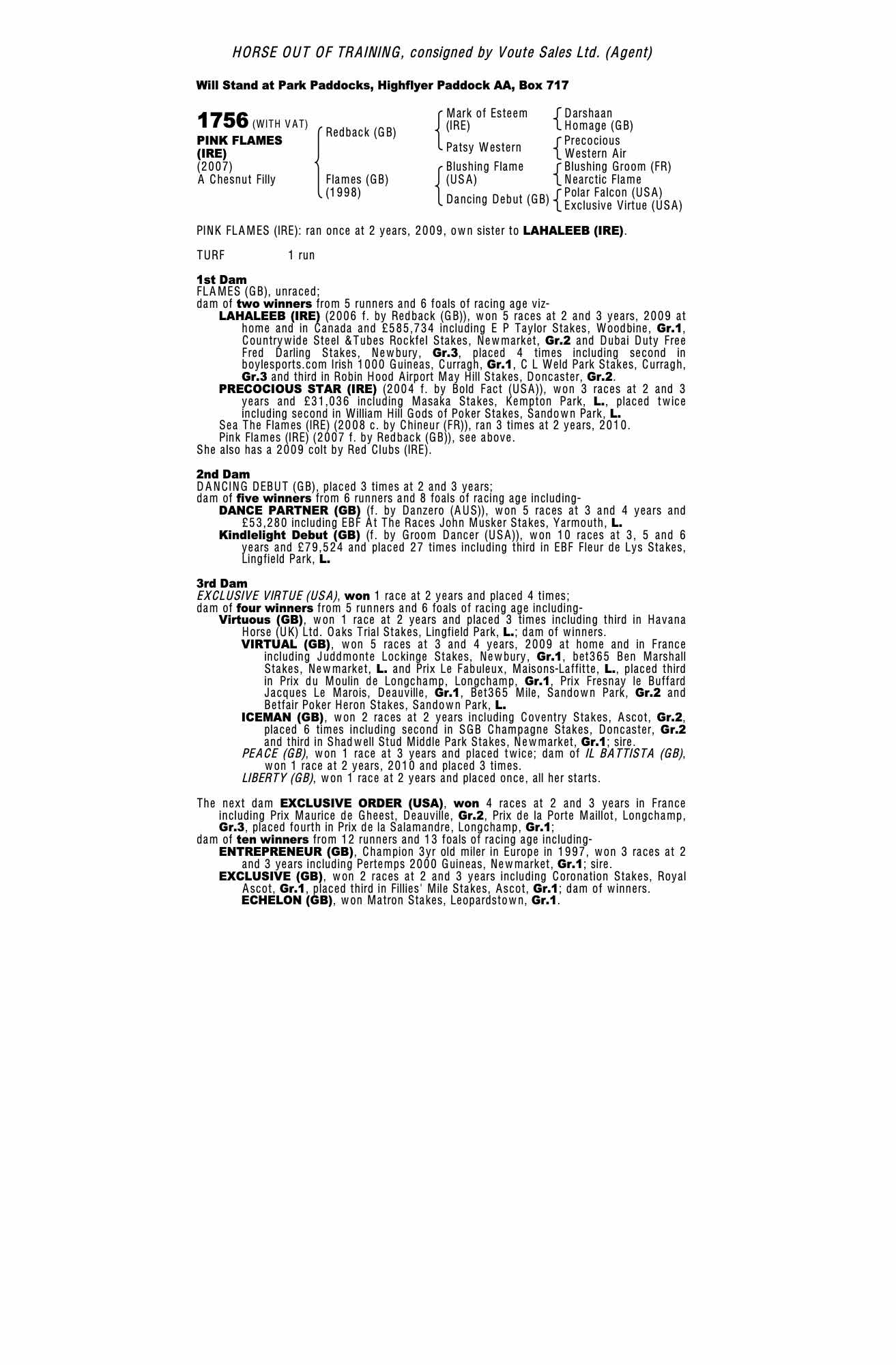 Consignor: Voute Sales Ltd. (Agent)