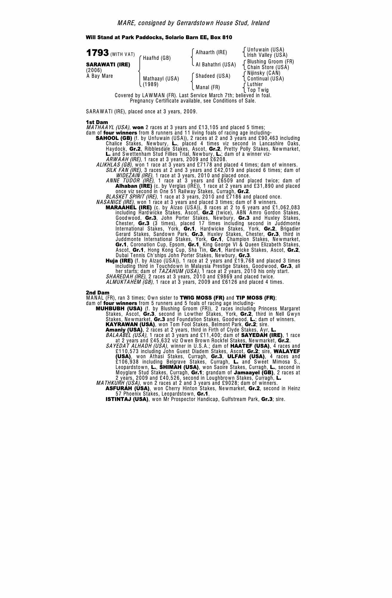December Mare Sale 2008 lot 2539 Mathool (IRE) (F. by Alhaarth (IRE)), Sharp Hill Stables=>Five Star Bloodstock 15,000 gns