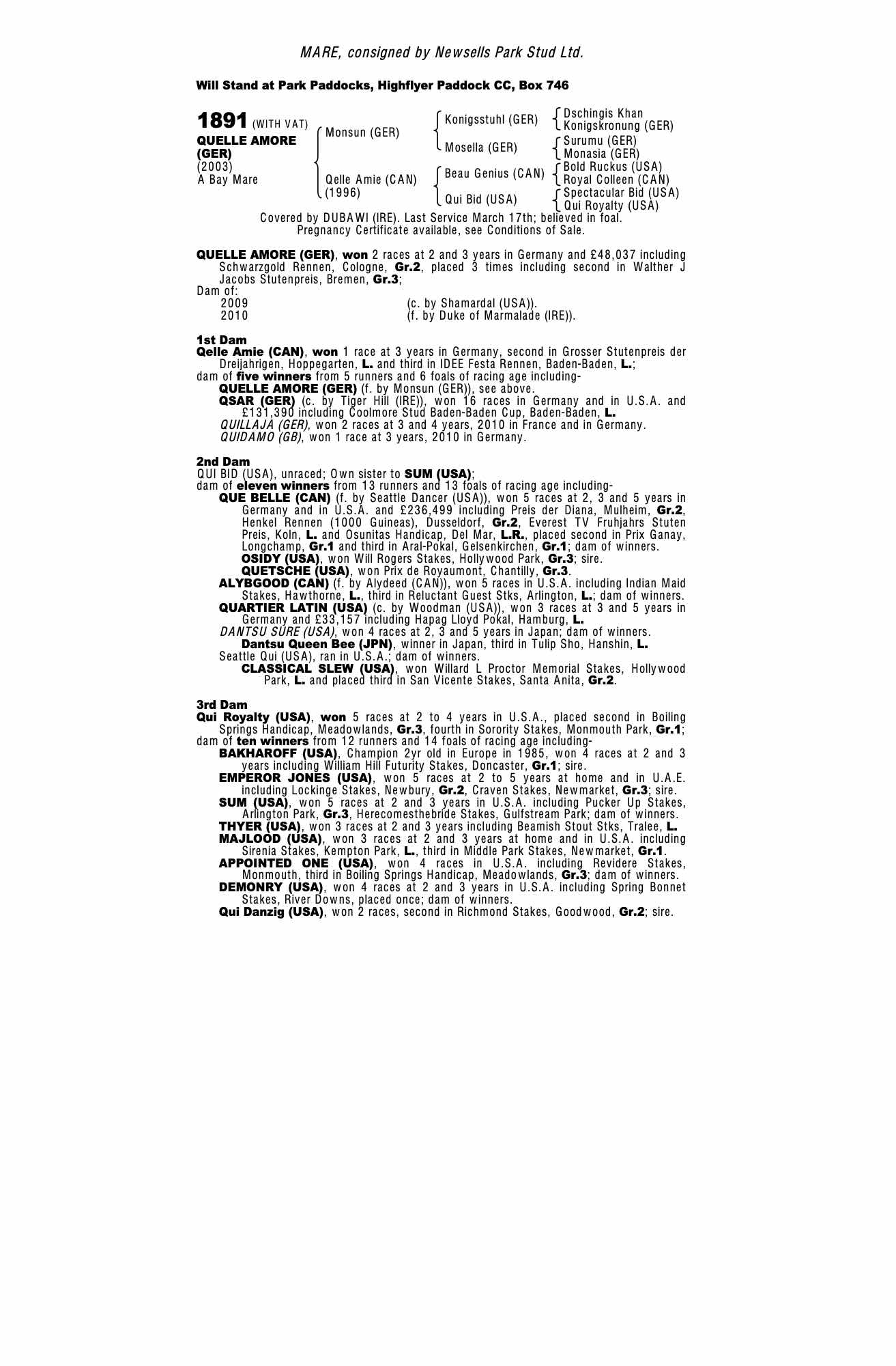 December Mare Sale 2019 lot 1431 Quintessenz (GER) (M. by Soldier Hollow (GB)), Keith Harte (Agent)=>Elusive Bloodstock / Dan Tunmore 22,000 gns