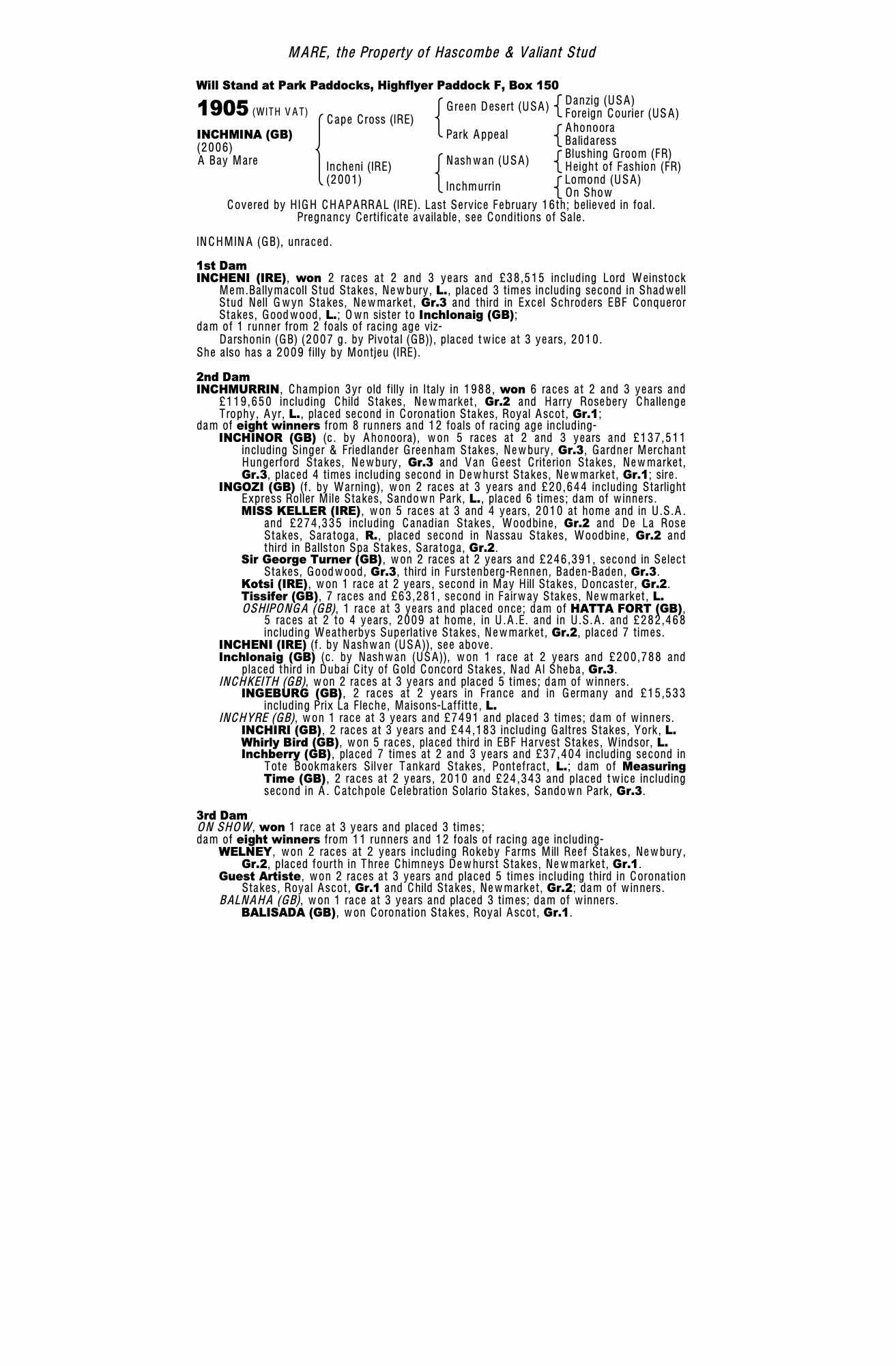 December Mare Sale 2023 lot 1658 Inchina (GB) (M. by Montjeu (IRE)), Hascombe & Valiant Stud Ltd.=>Lot Not Sold 11,000 gns