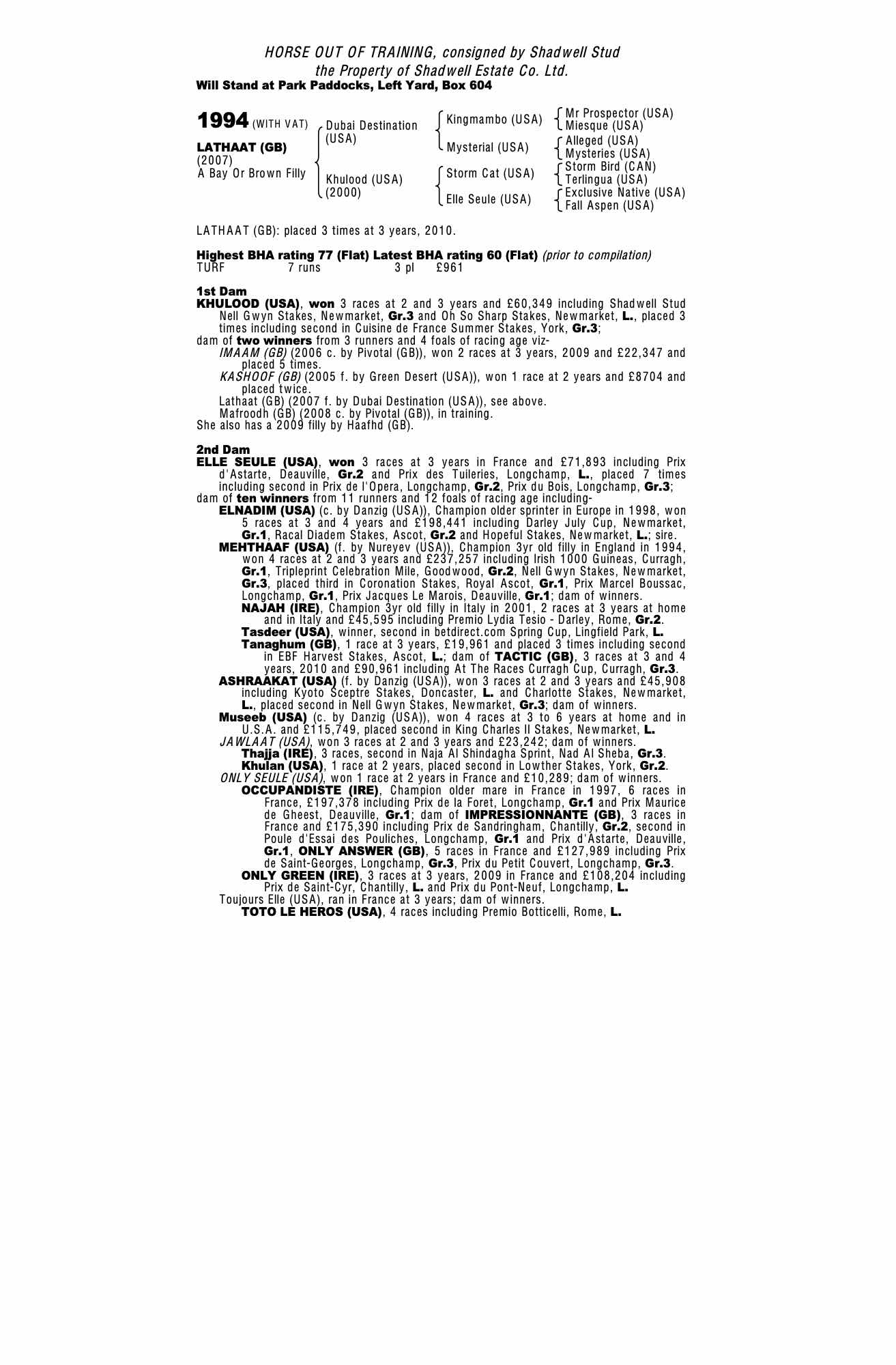 December Mare Sale 2012 lot 2244 Khajool (IRE) (F. by Haafhd (GB)), Shadwell Stud=>J Walsh Bloodstock 13,000 gns