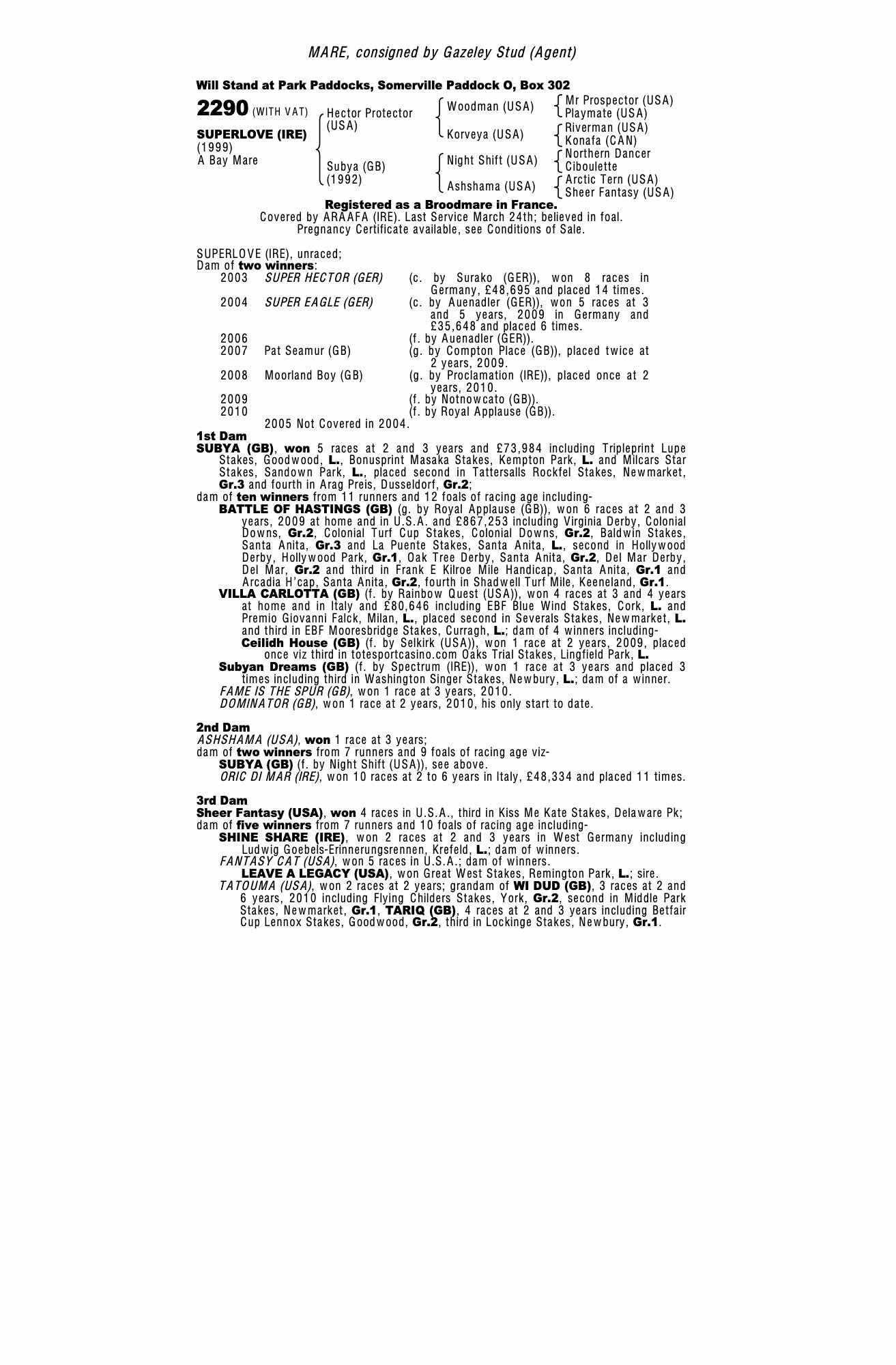 July Sale 2005 lot 585 Subyan Dreams (GB) (F. by Spectrum (IRE)), St Gatien Stables=>Margaret O'Toole 50,000 gns