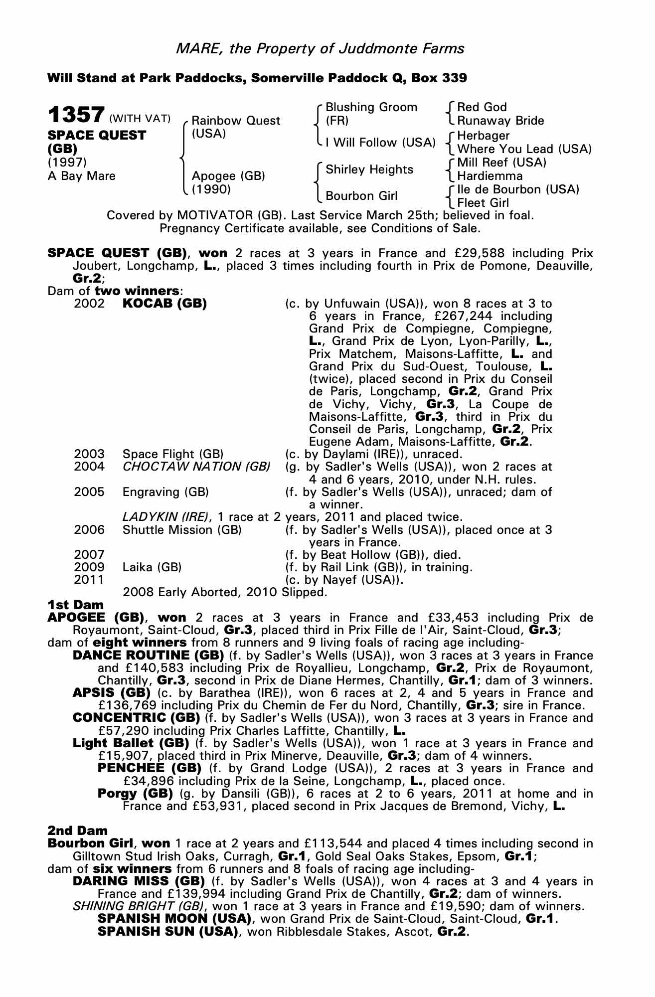 December Mare Sale 2014 lot 1473 Shuttle Mission (GB) (M. by Sadler's Wells (USA)), Juddmonte Farms=>BBA Ireland 22,000 gns