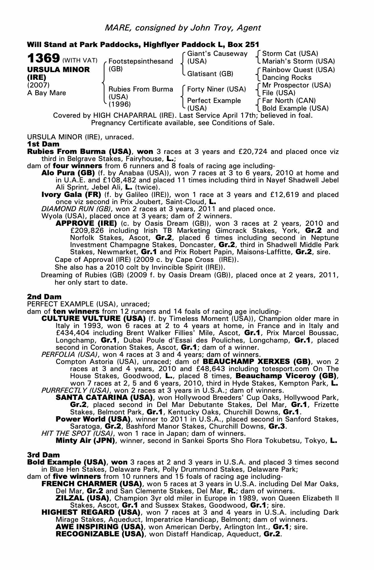 October Yearling Sale, Book 2 2012 lot 1006 F. by Selkirk (USA) 2011, Watership Down Stud=>Ferrybank Properties 33,000 gns