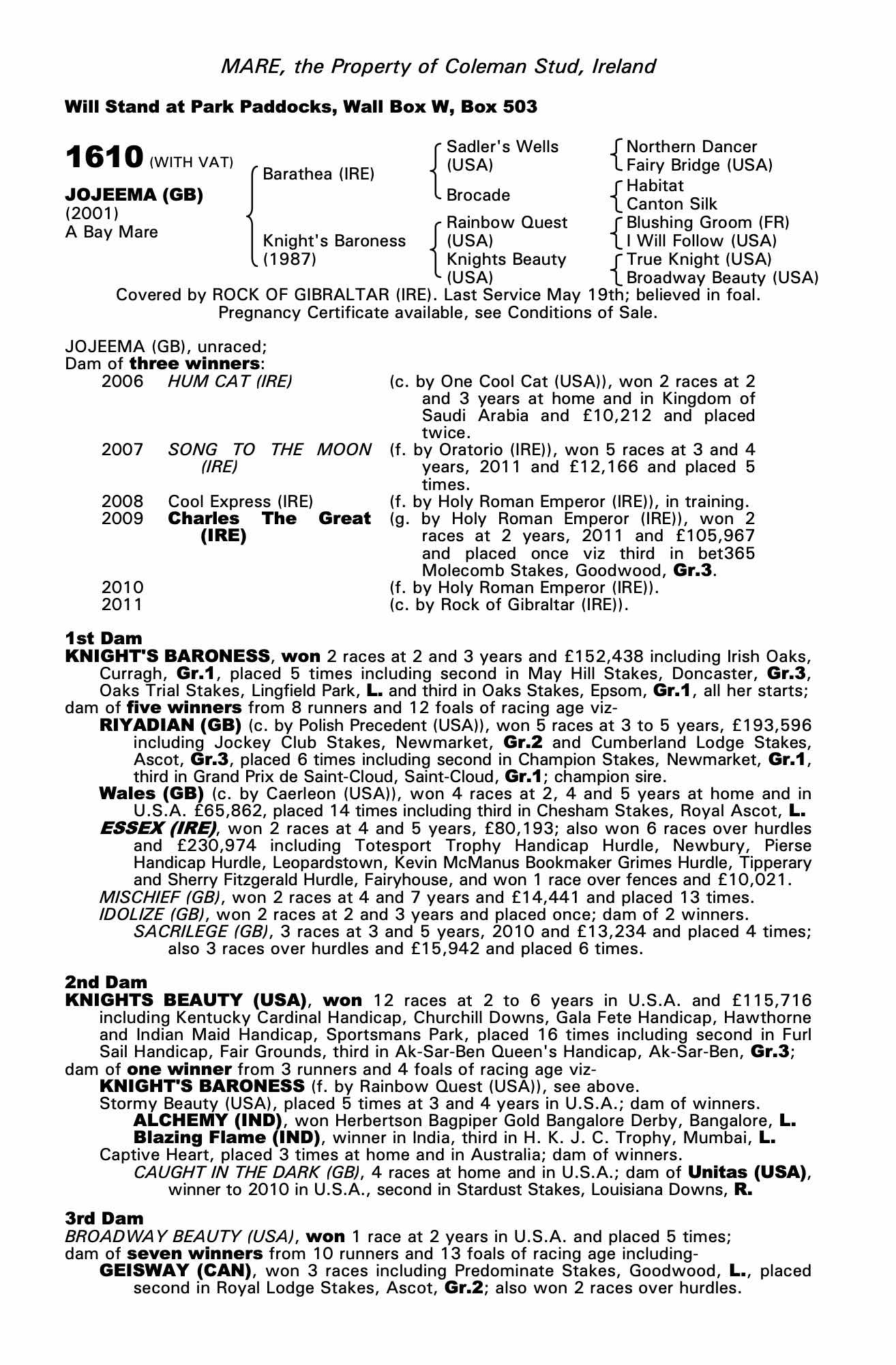 Consignor: Coleman Stud, Ireland