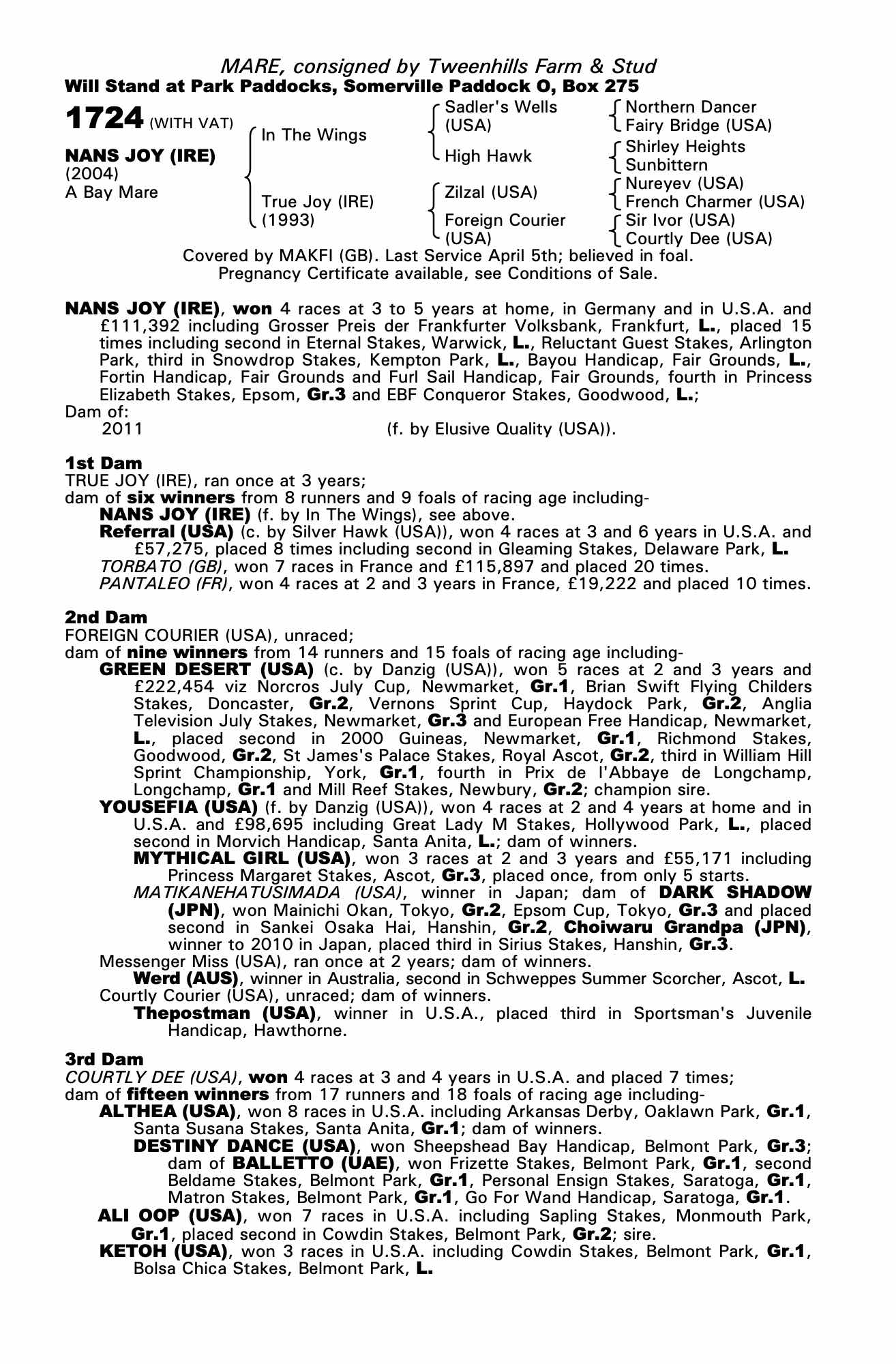 October Yearling Sale, Book 1 2003 lot 399 F. by Rainbow Quest (USA) 2002, Kilcarn Park, Ireland=>Lot Not Sold 100,000 gns